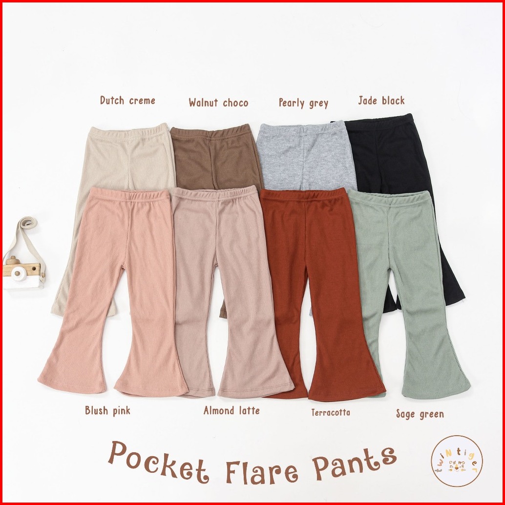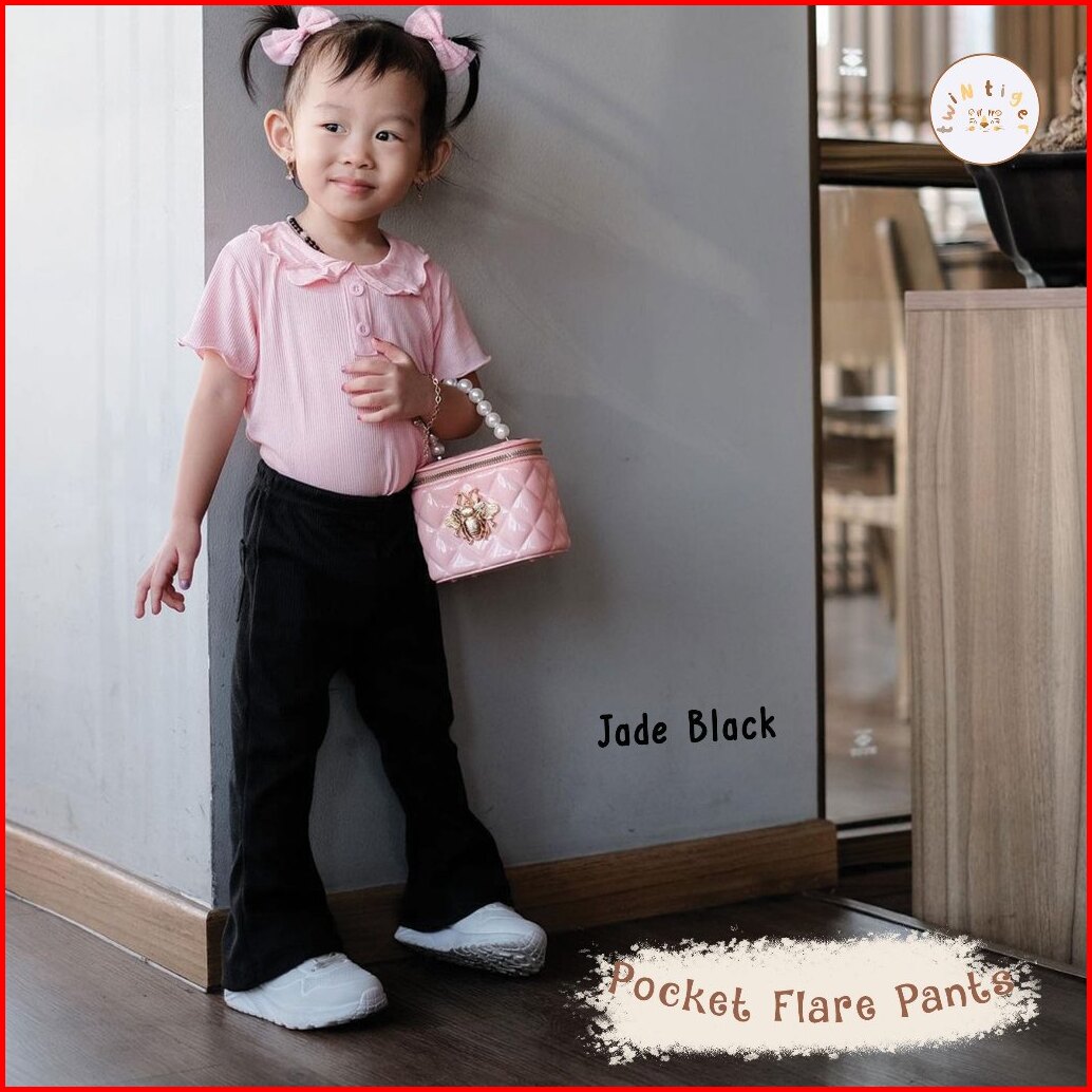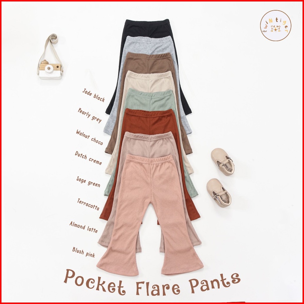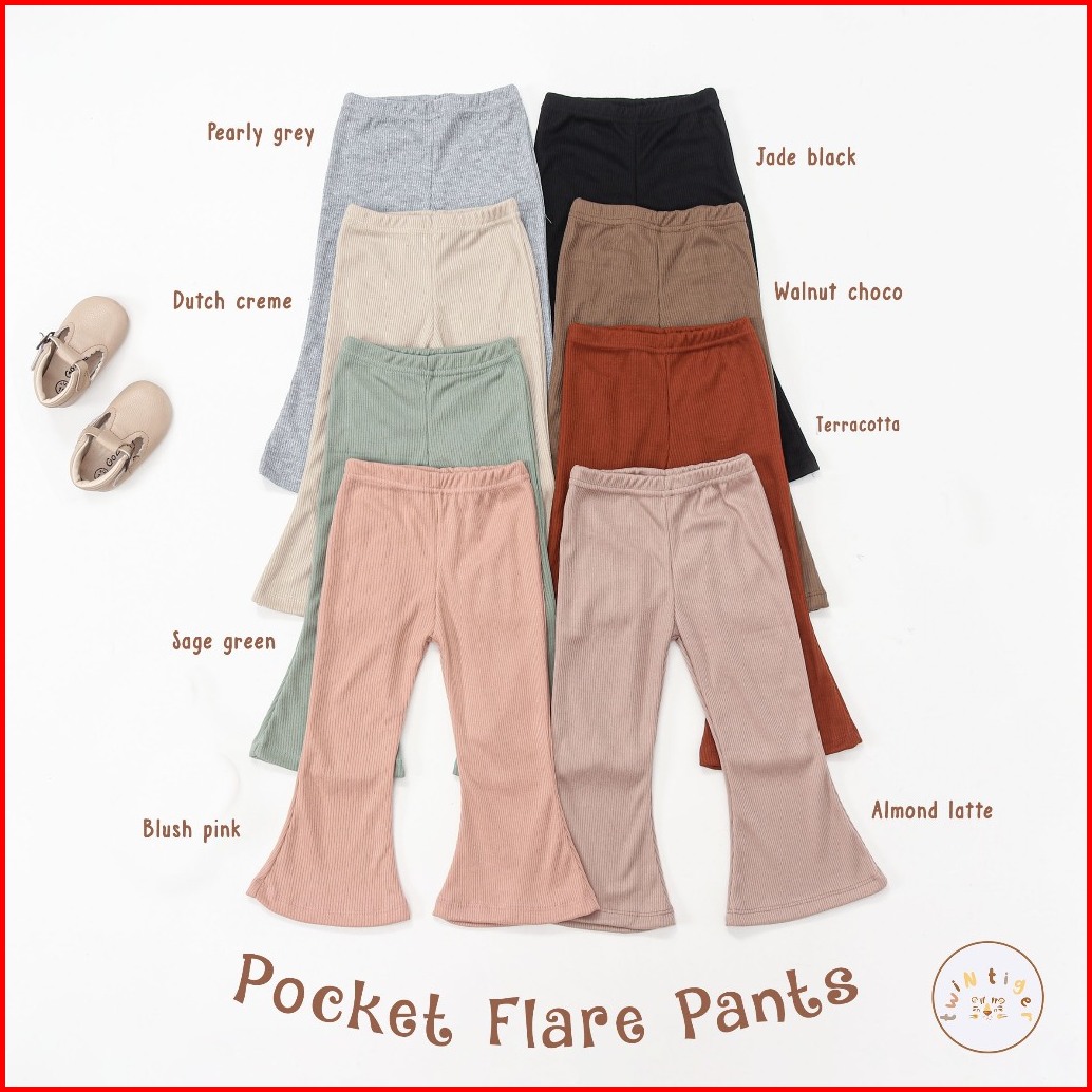 Twin Tiger Celana Cutbray Anak Perempuan Legging Cutbray Pocket Flare High Waist Rib Knit Usia 6 Bulan-3 Tahun