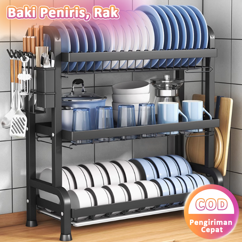 Rak Piring Stainless Rak Rak Dapur Cuci Piring Wastafel 2 Susun Tingkat Peralatan Dapur Piring Dengan Aksesoris/Terbaru Rak Piring Stainless