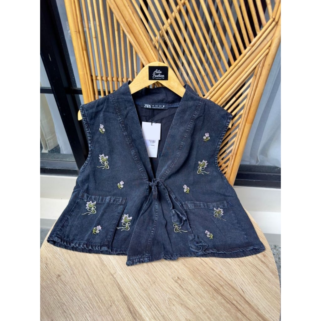 OUTER JEANS ROMPI JEANS BORDIR VEST JEANS BKK MODEL BORDIR MOTIF BUNGA BERVARIASI RANDOM CANTIK CANTIK
