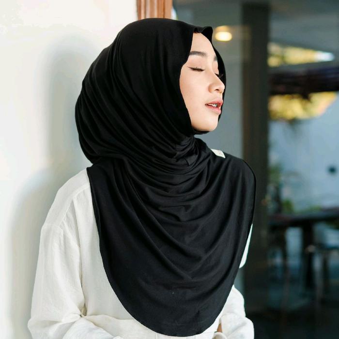 Jisoo Inner - Hijab Pashmina Instan Inner Jiso Size L Pashmina Jiso Meleyot By Alma Hijab - Hitam