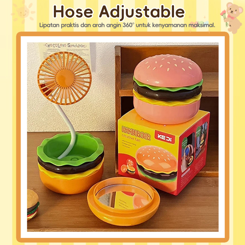 Kipas Angin Hamburger USB Mini Desktop Digital Display 3 Kecepatan Hadiah Unik