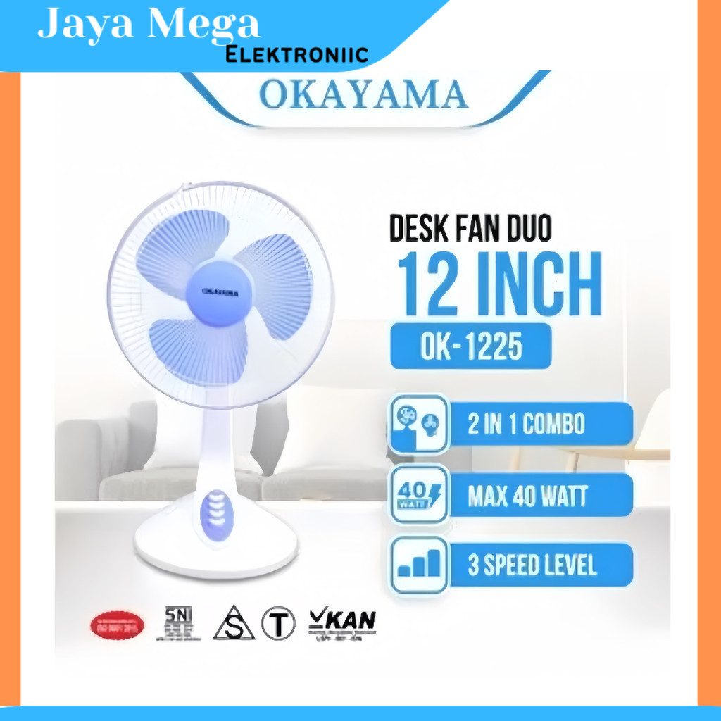 OKAYAMA 12 inch Kipas Angin 2 in 1 Meja Dan Dinding OK-1225