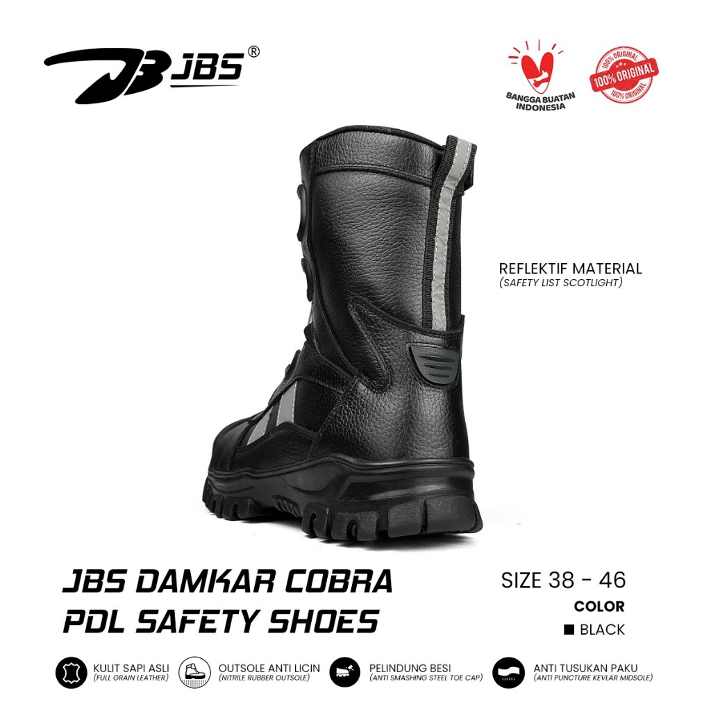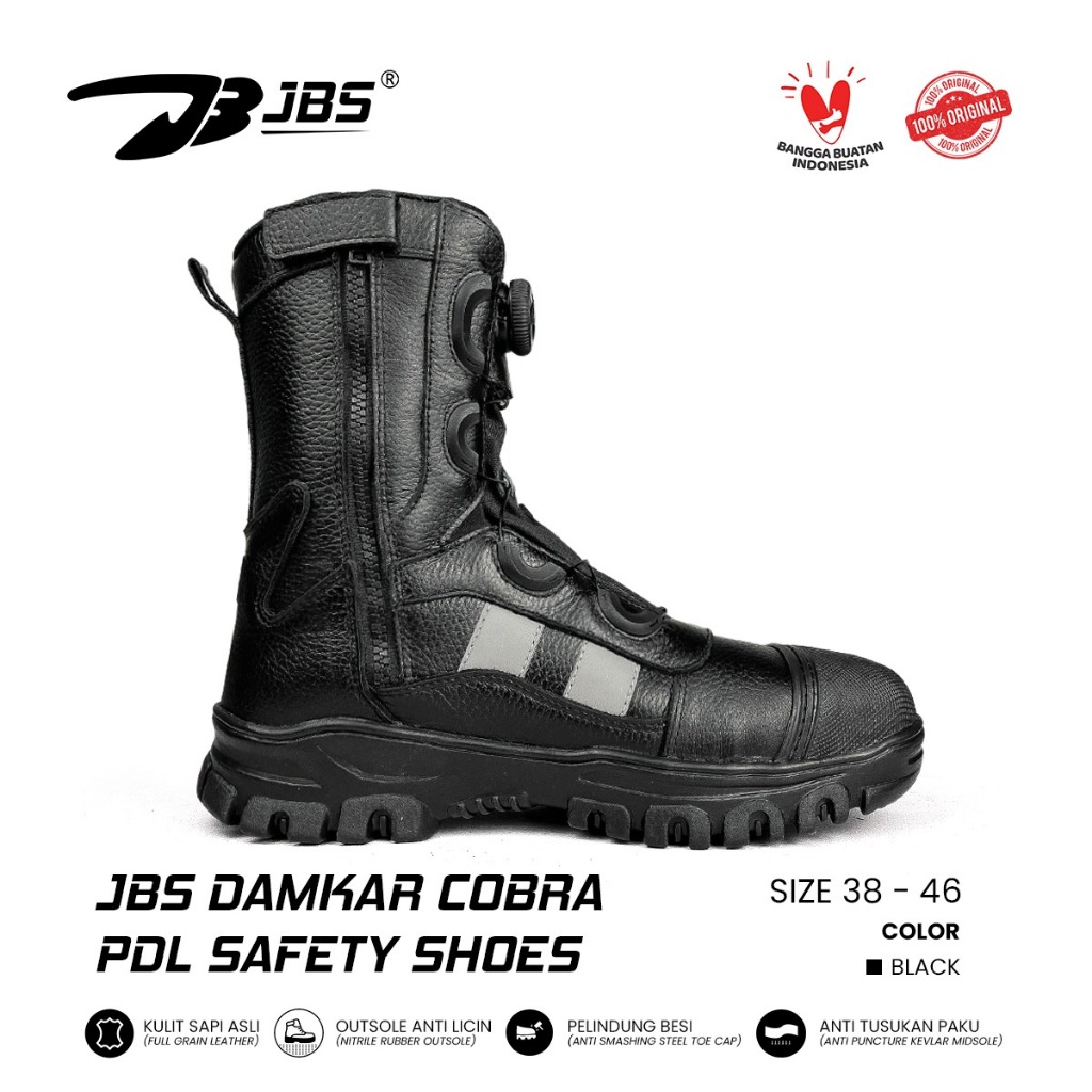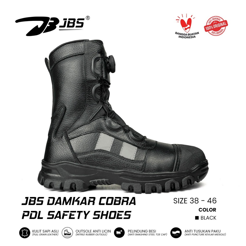 Sepatu Safety JBS Damkar Cobra Tali Putar Lycing System Boots Hitam Pria Kerja