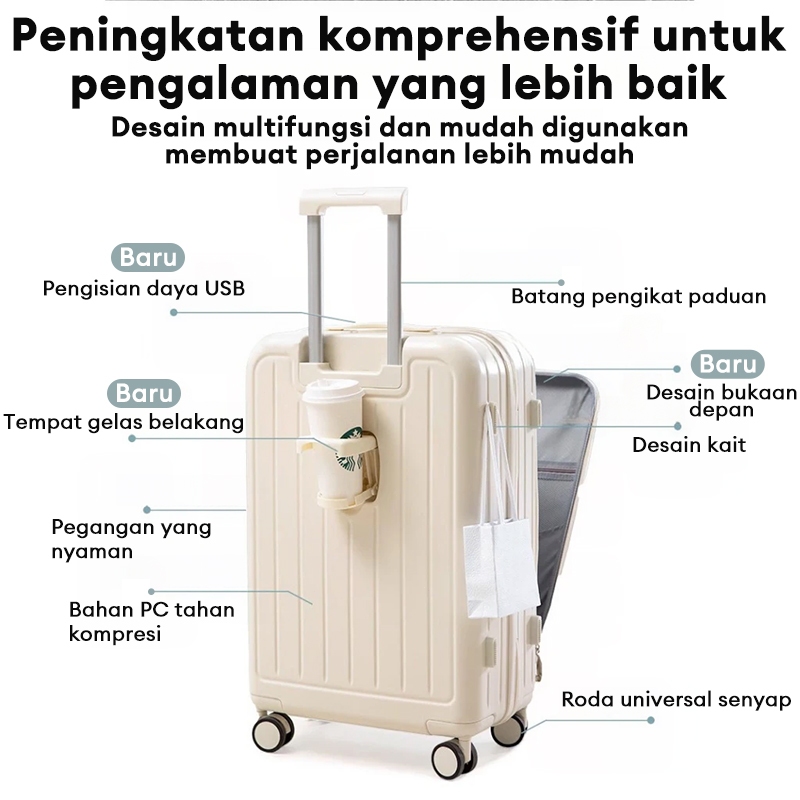 BoldEdge Koper 20/24 Inch Koper dengan Pembukaan Depan Laptop 16 Inci Tempat Gelas PVC Port USB