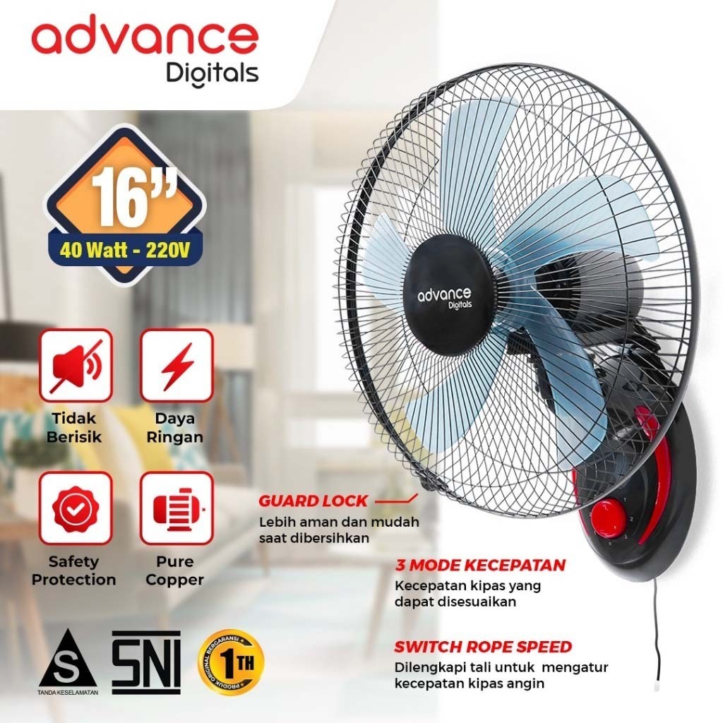 Advance WF-1605 Kipas Angin Dinding 16 Inch 5 Baling-Baling Plastik dengan Kecepatan Turbo Wall Fan
