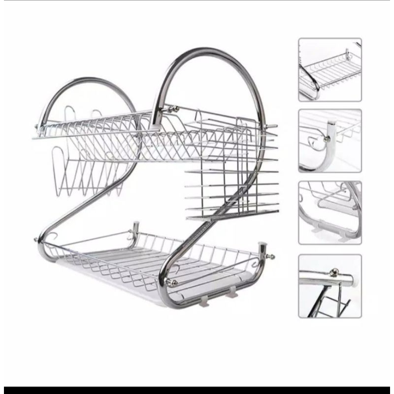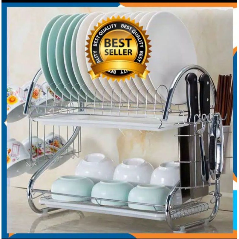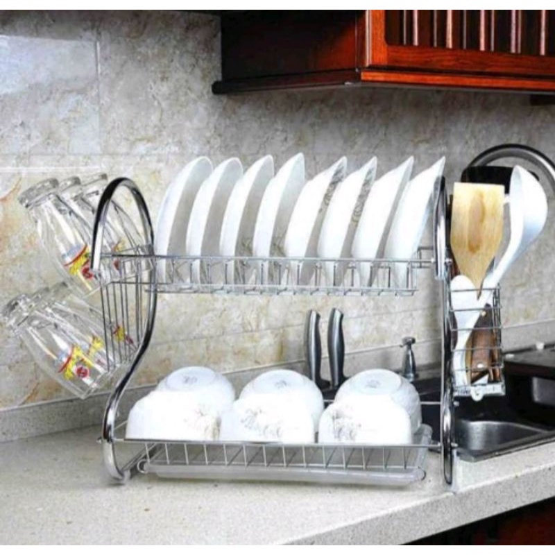 RAK PIRING Stainless Minimalis 2 Susun Tingkat anti karat debu dengan tatakan