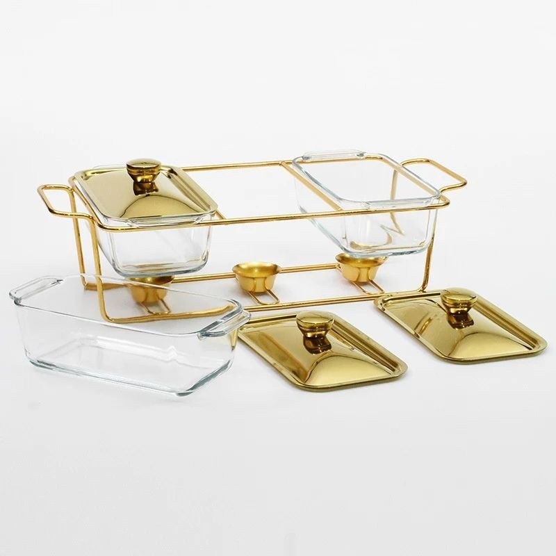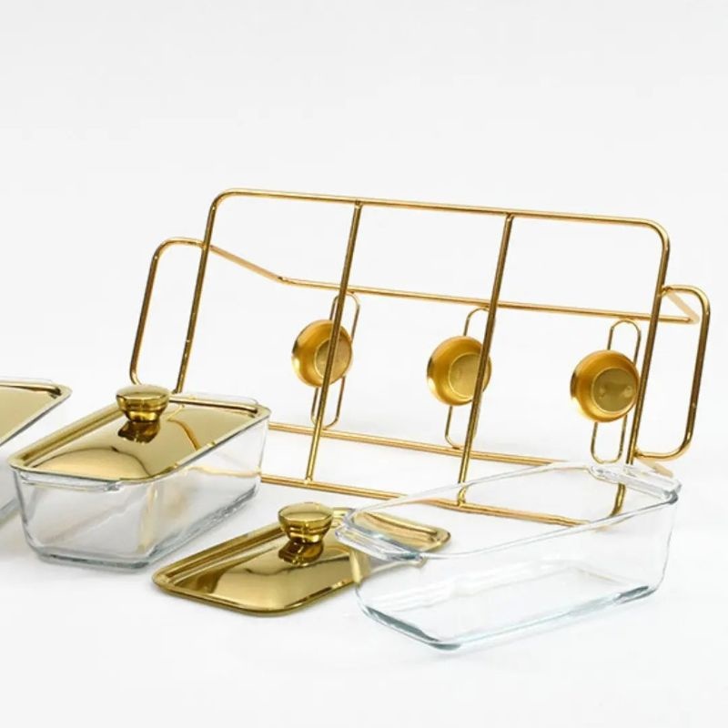 Prasmanan Transparan 3in1/Triple Buffett /Prasmanan Marmer 3 Grid /Tempat makanan/3 in 1 Serving Plate/Piring Saji Prasmanan Kaca Stainless Mewah
