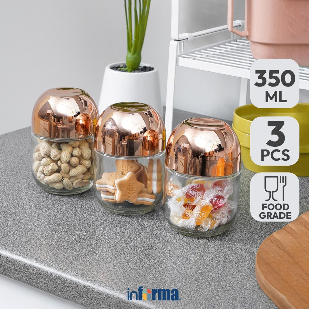 Informa Set 3 Pcs Tabitha Stoples Kaca Jar Tempat Simpan Snack Dan Permen Setoples Toples Serbaguna Perlengkapan Dapur Wadah Makanan