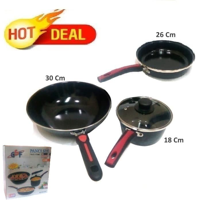 Panci Set Enamel GSF G-2630 Frypan Tutup kaca Wajan Wok Dan Saucepan