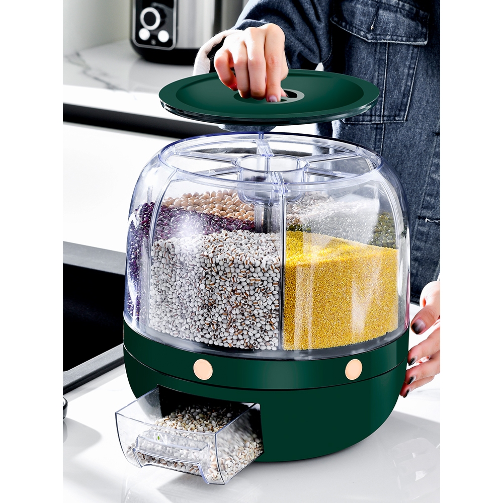 Dispenser Beras Putar 6 Kg Liter Estetik Tempat Penyimpanan Wadah Sereal Biji Bijian Anti Kutu