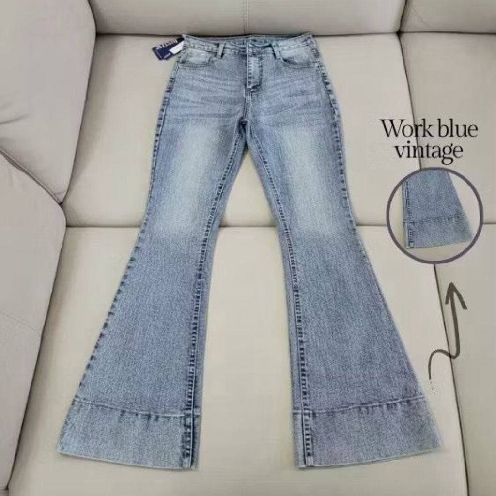 Jennie Cutbray Jeans Higwaist Lipatan Kaki Besar Jeans strecht Wanita