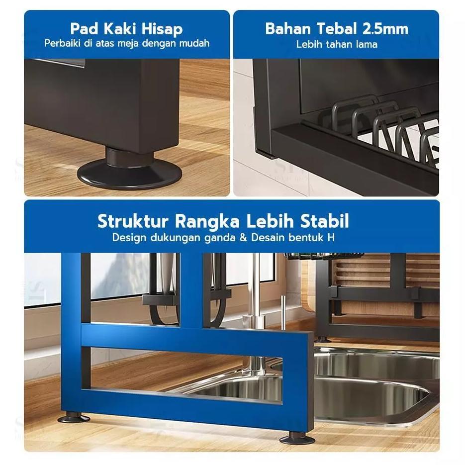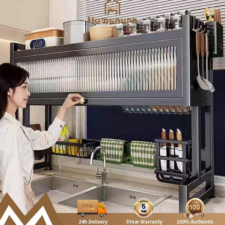 Homsaura Rak Piring Tertutup Rak Piring Wastafel Rak Dapur Multifungsi Dengan Aksesoris