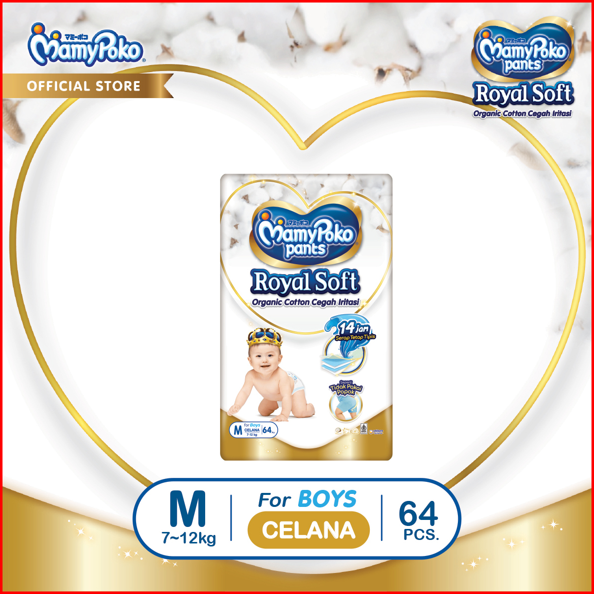 Mamypoko Pants Royal Soft Organic Cotton - M 64 - Boys - Popok Celana