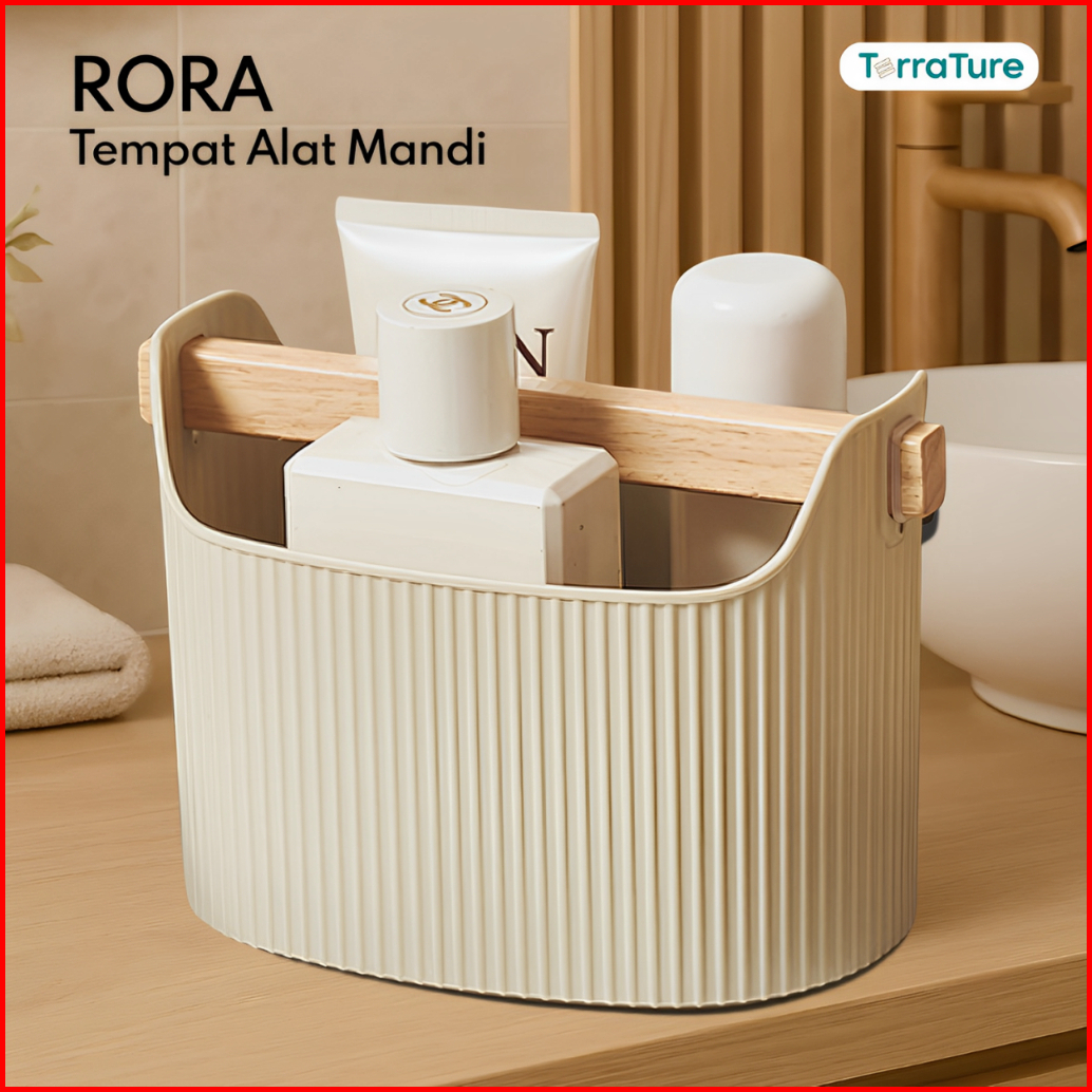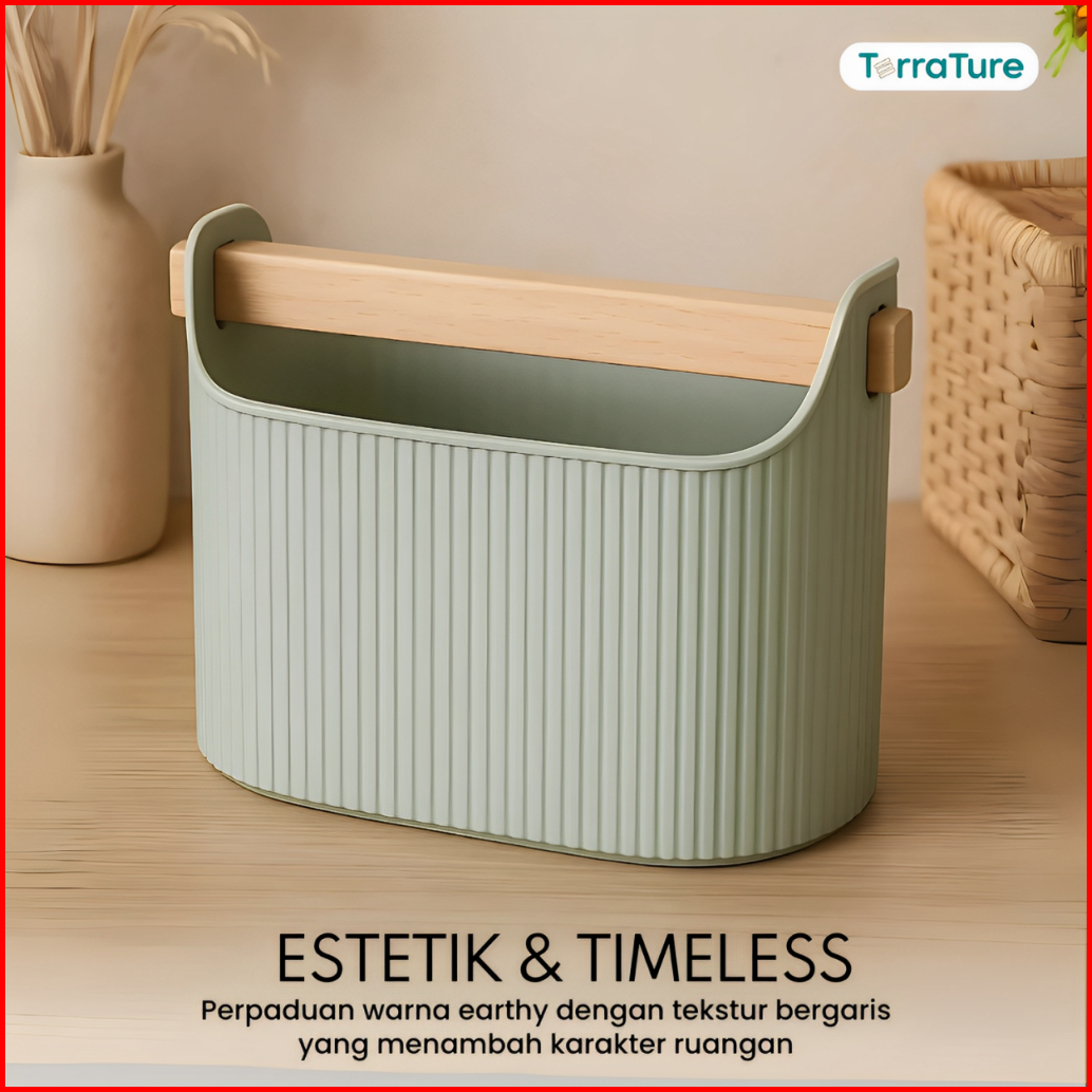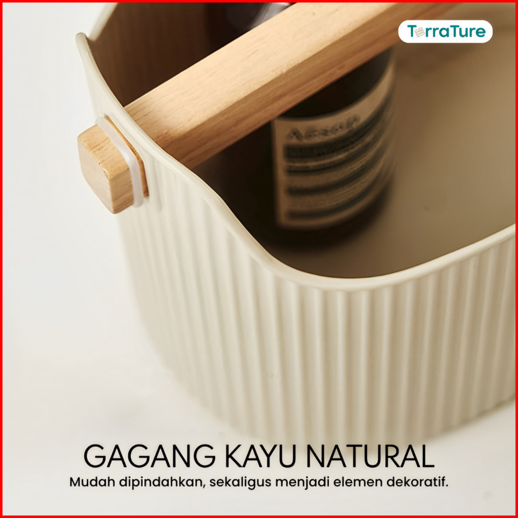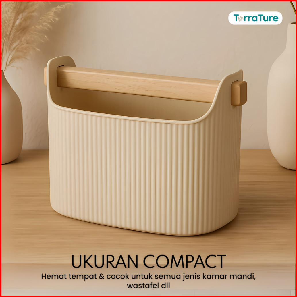 Terrature Keranjang Sabun Mandi Serbaguna Handle Kayu Keranjang Aesthetic Organizer Kamar Mandi