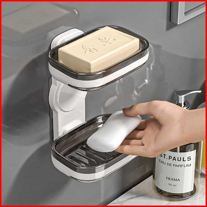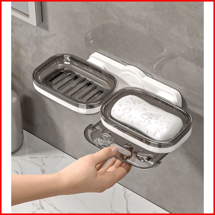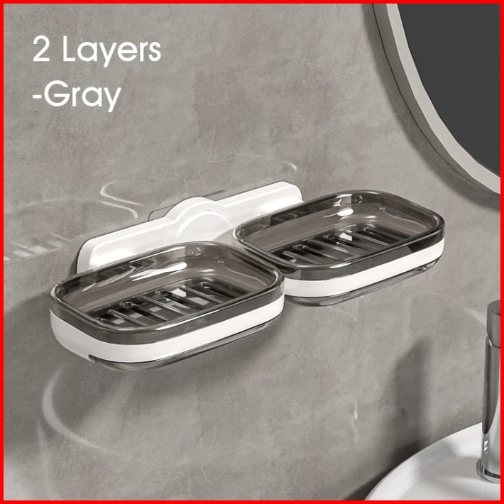 Tempat Sabun Batangan 2 In 1 Tempel Dinding Kotak Sabun Mandi 2 Layer - Vc
