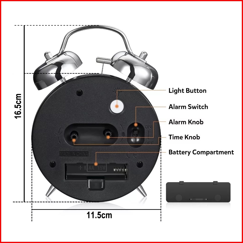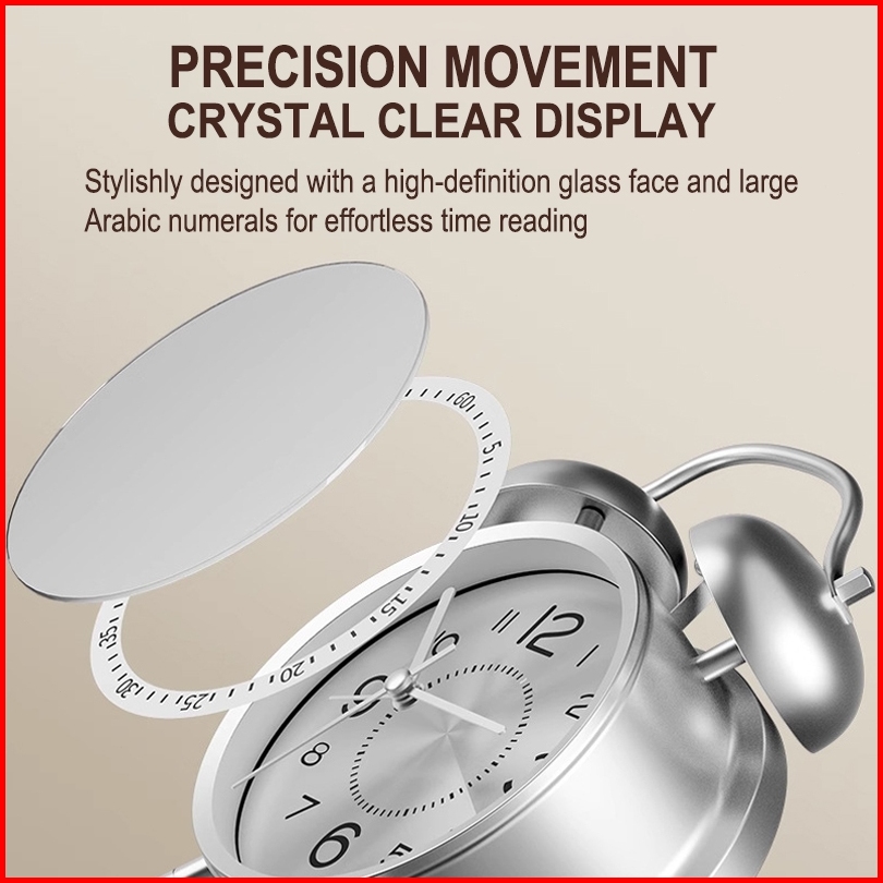Jam Weker Mekanik Ukuran Besar Untuk Pelajar Lansia Alarm Kuat Pembangun Tidur Model Terbaru Dengan Frame Logam Dan Lamp