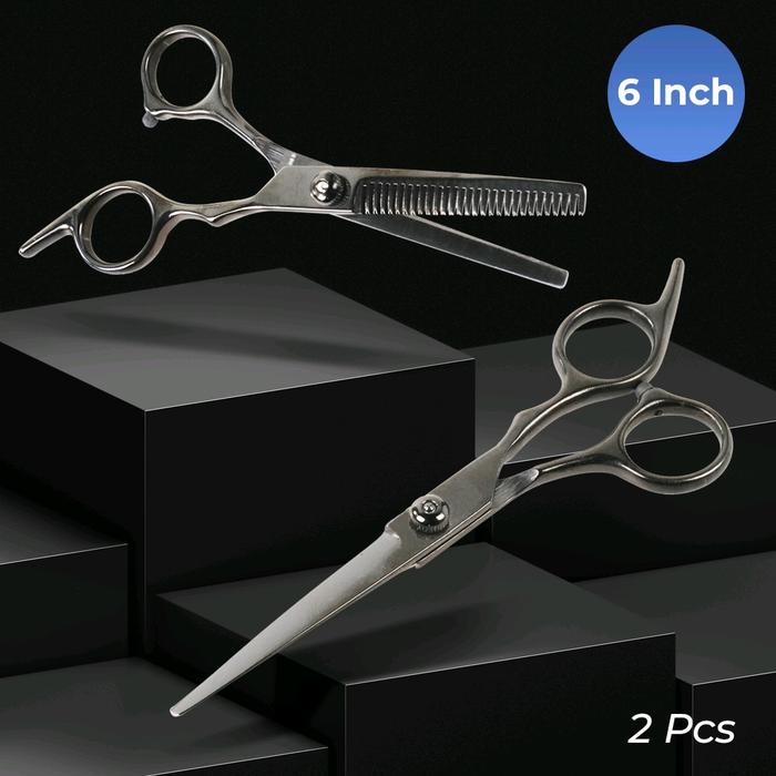 2 PCS Sepasang Gunting BLACK Sasak Potong Rambut Penipis Stainless 6 inc Barber Shop Pangkas Rambut