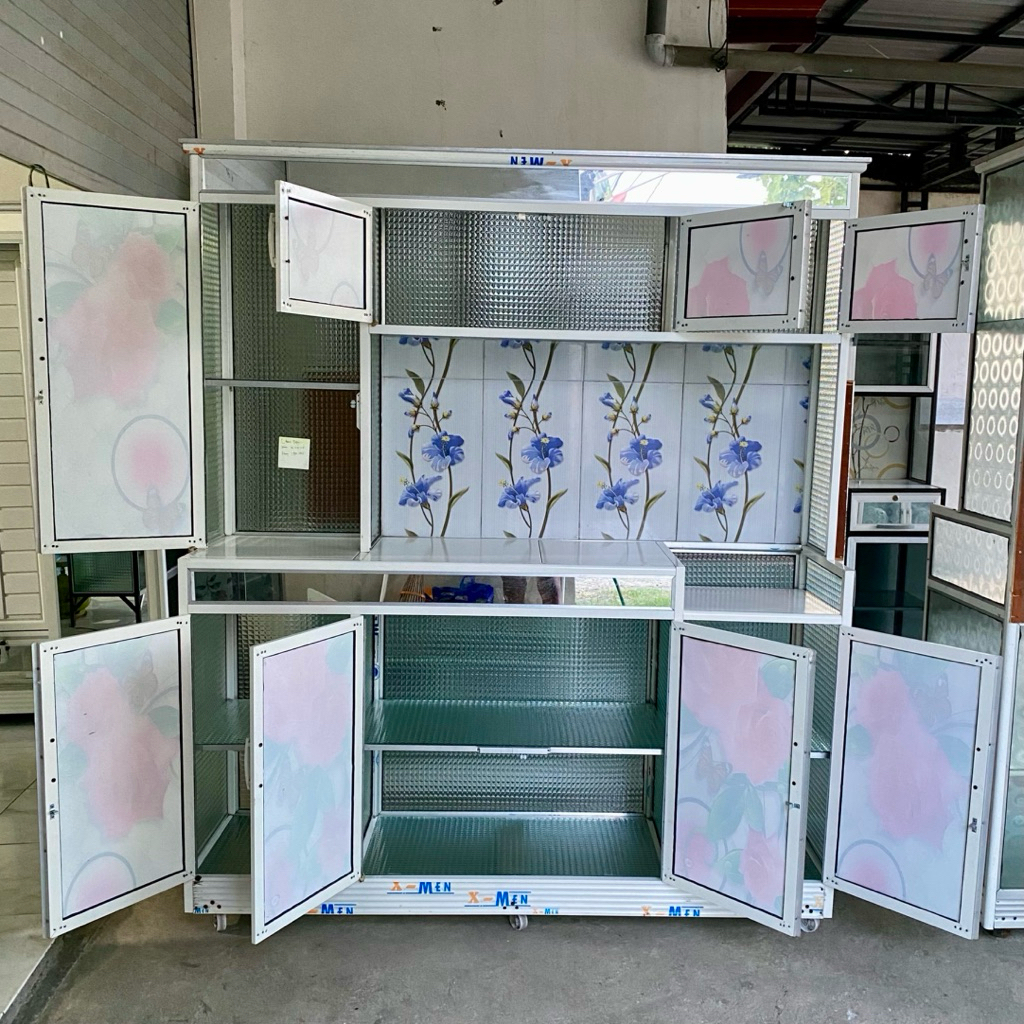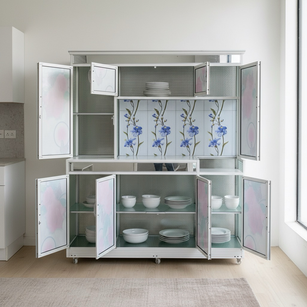 Rak Piring Dapur Serbaguna Pintu Full Printing // Bahan Alumunium & Kaca