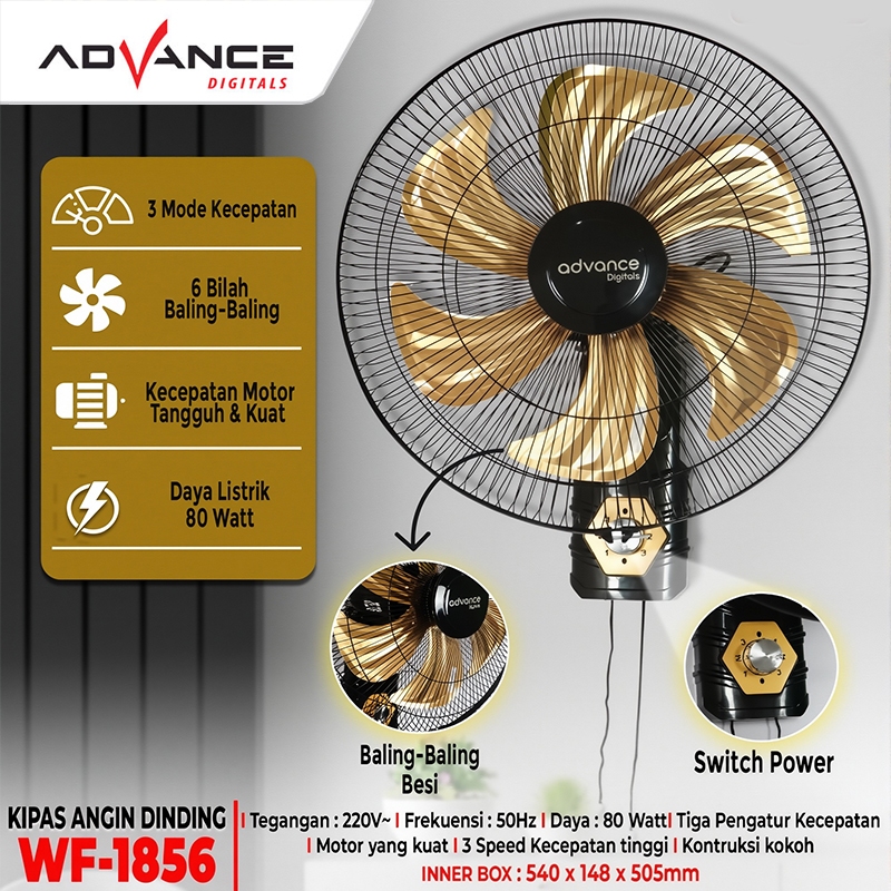 Advance kipas angin dinding 18inch WF-1856 kipas angin tembok 6 BilahBaling-Baling wall fan Besi 80 Watt Garansi resmi 1 tahun