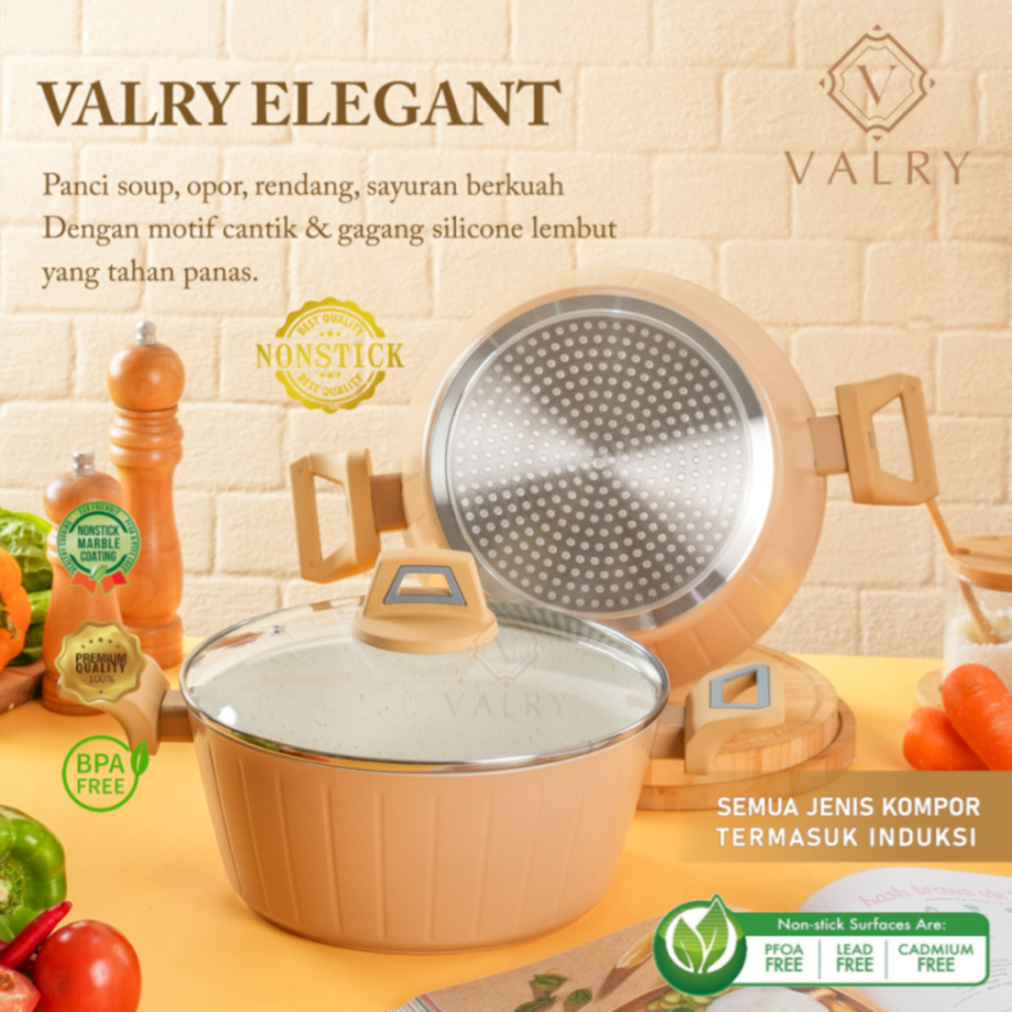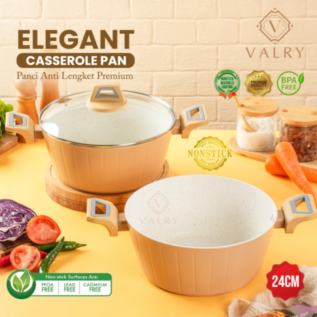 wajan pot CASSEROLE SET STEAMER Glass lid elegant valry marble putih anti lengket SEMUA KOMPOR