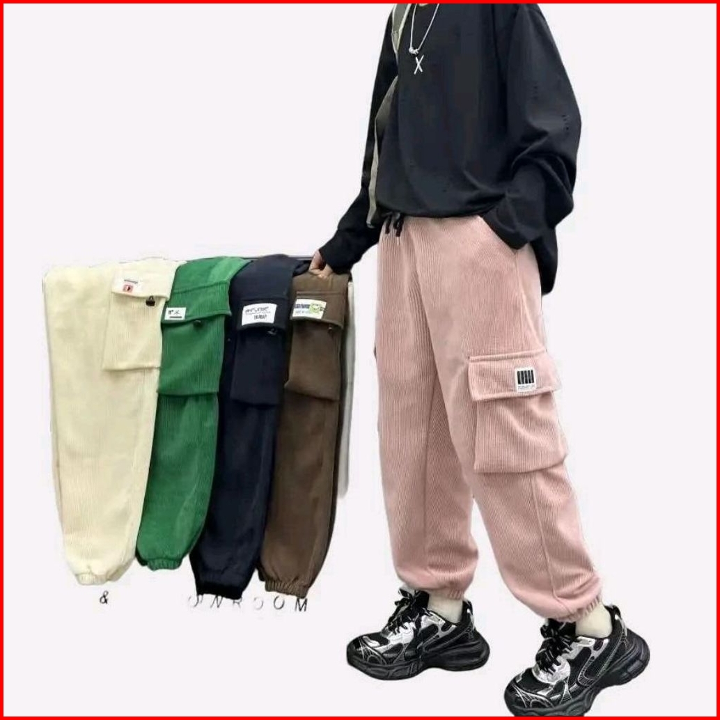 Celana Jogger Cargo Anak Bahan Corduray Premium Usia 8-13 Tahun Nyaman Keren Dengan Pinggang Karet Elastis Dan Tali Seru