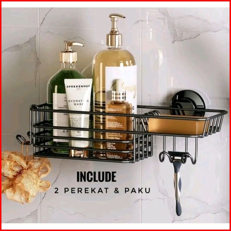 Rak Sabun Kamar Mandi Anti Karat Dengan Tempat Shampoo Dan Sabun Serta Pisau Cukur Free Perekat Dan Paku
