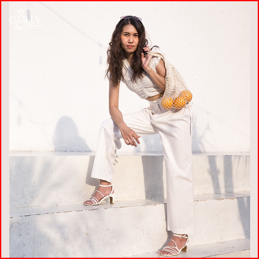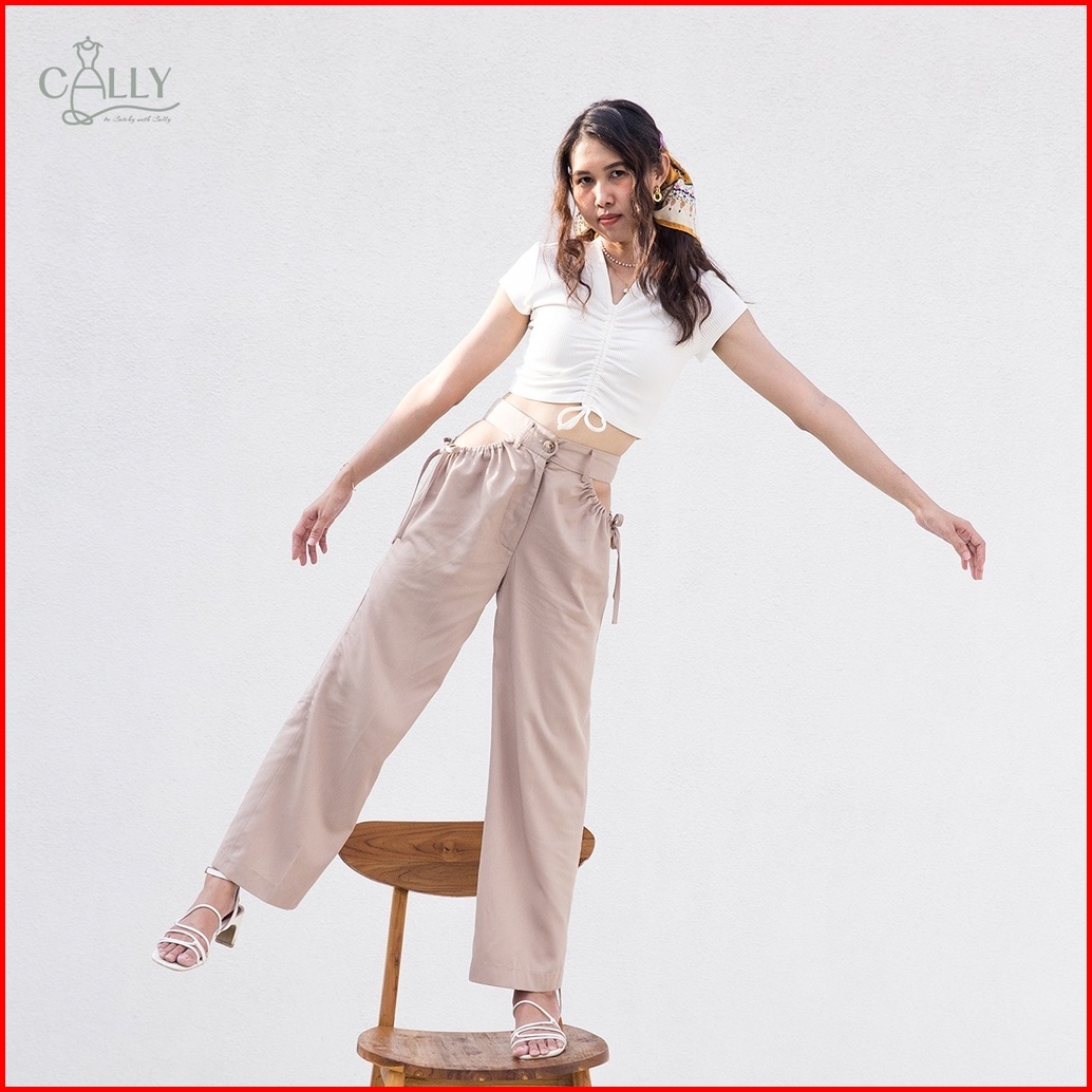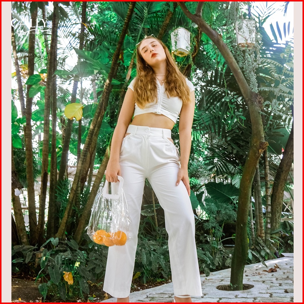 Long Pants Wanita Korean Style Celana Panjang Highwaist Wanita Outfit Pantai Wanita Broken White Putih Coklat Khaki Size