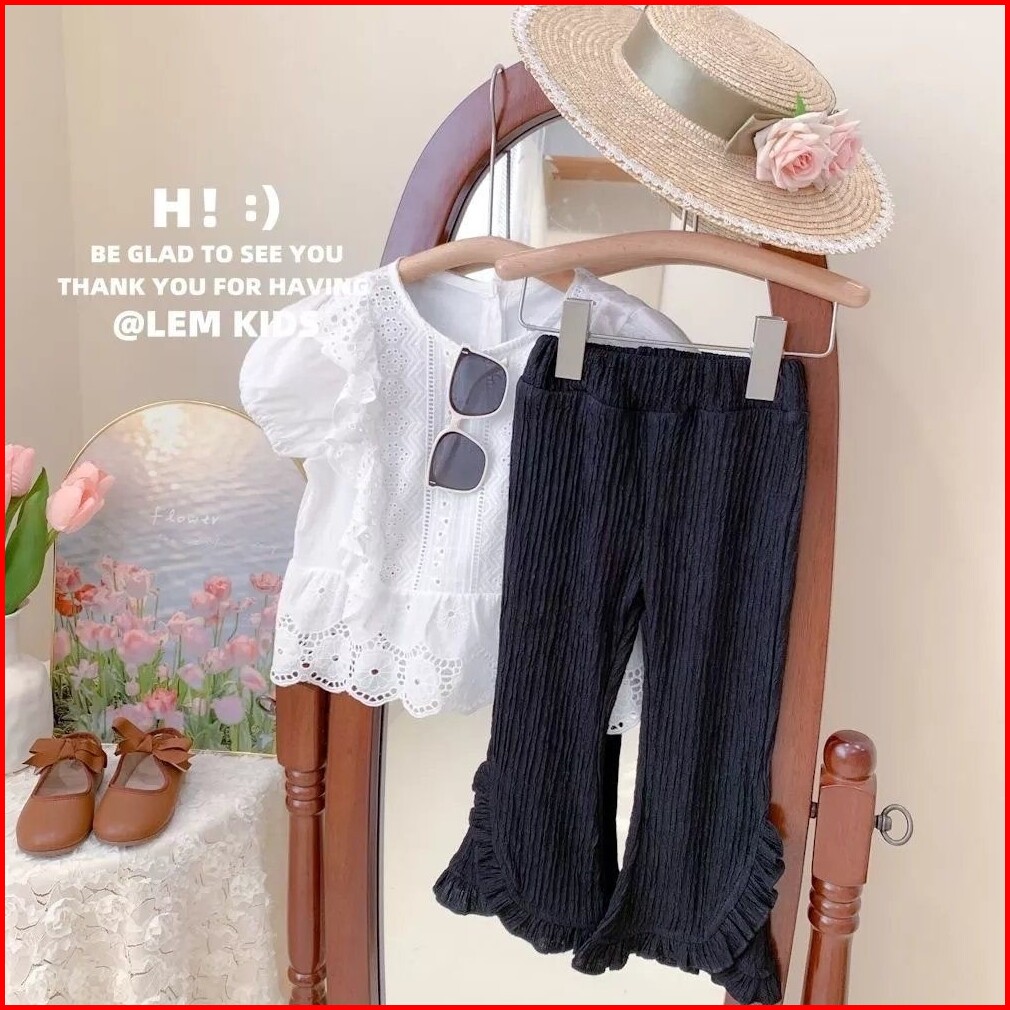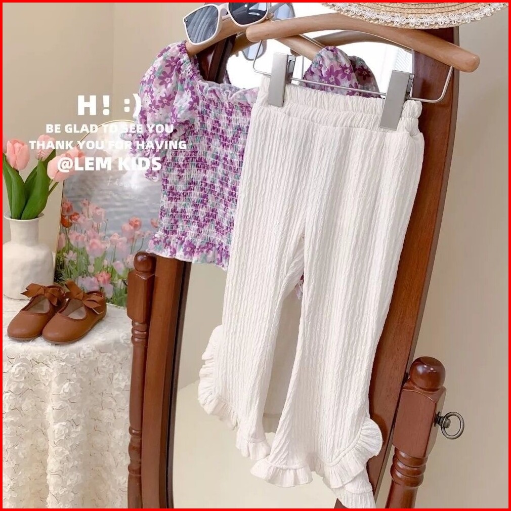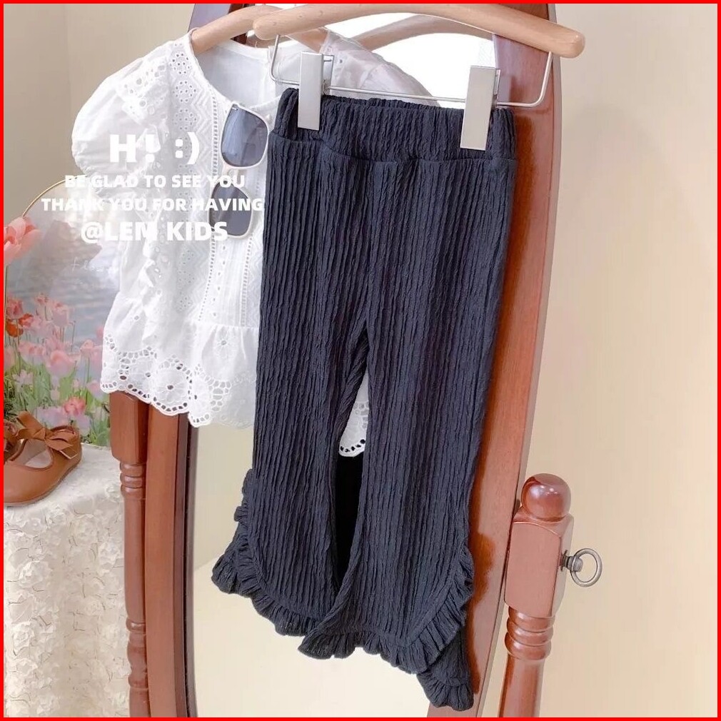 Baby Kiddo S 2-11 Tahun Celana Berkobar Trendi Anak Perempuan Elastisitas Tekstur Bergaris Tiga Dimensi Renda Manis Gaya