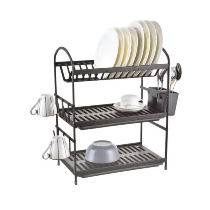 AZKO Krischef Rak Piring Aluminium 3 Tingkat - Hitam