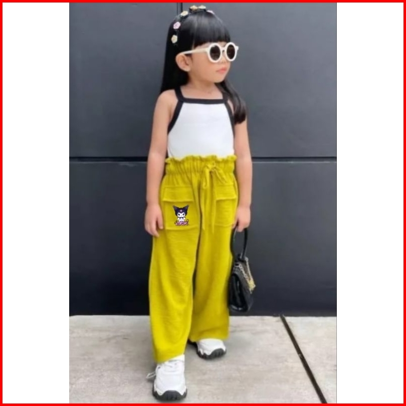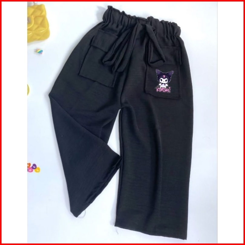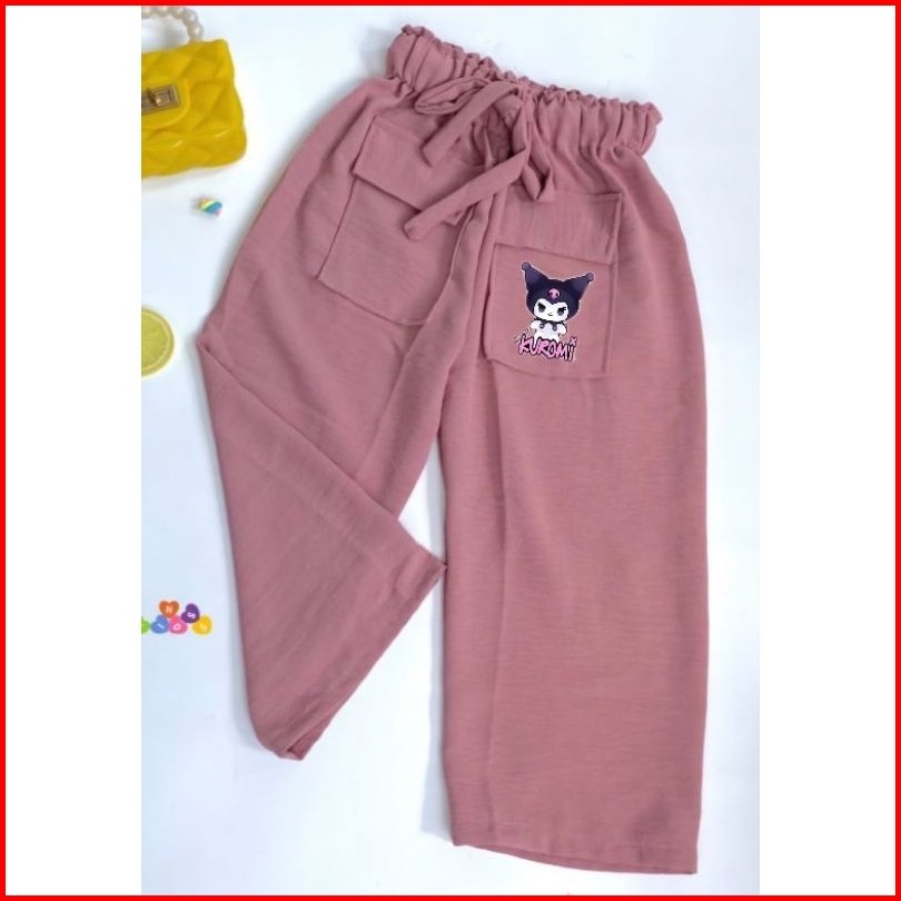Celana Kulot Crinkle Anak Kuromi Kantong Pocket Usia 2-9 Tahun