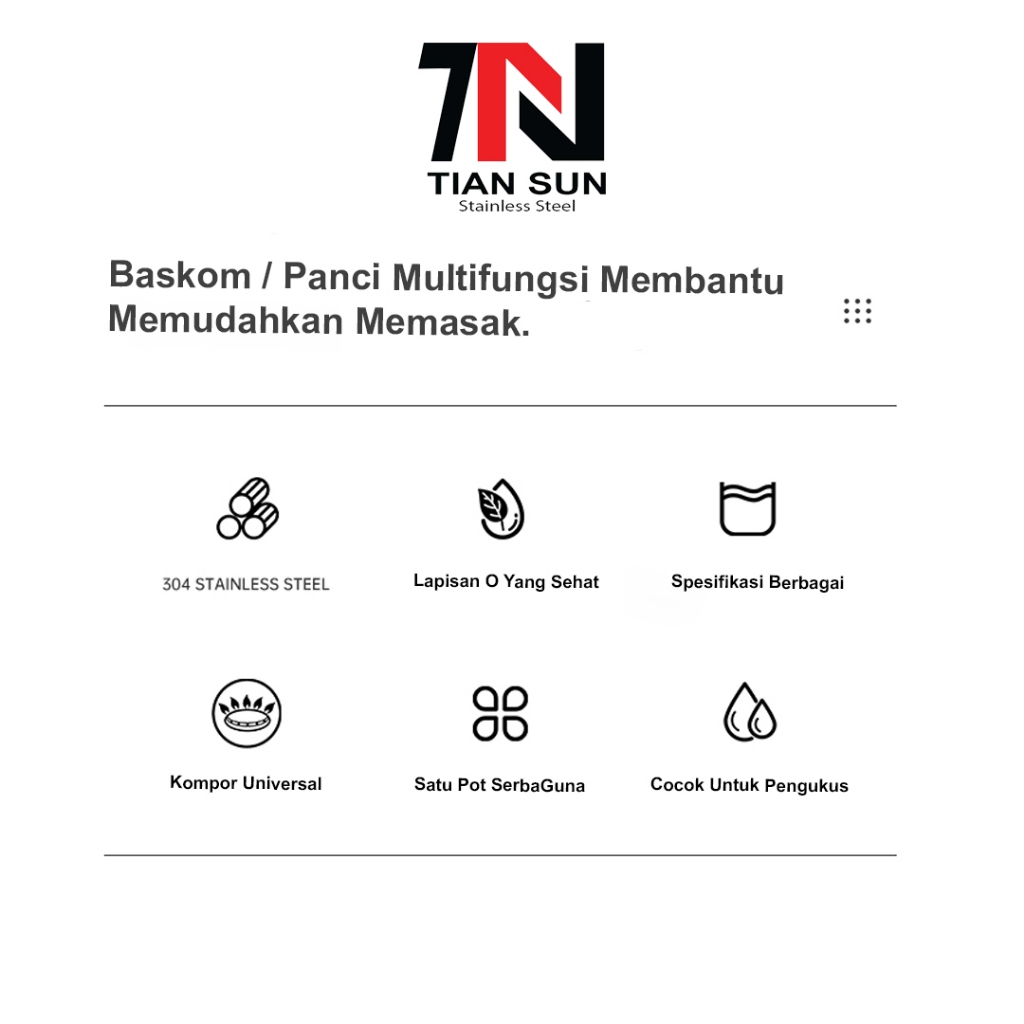 Tian Sun Panci Set Stainless Steel 3 Pcs SUS304 / Baskom stainless sus304 satu set