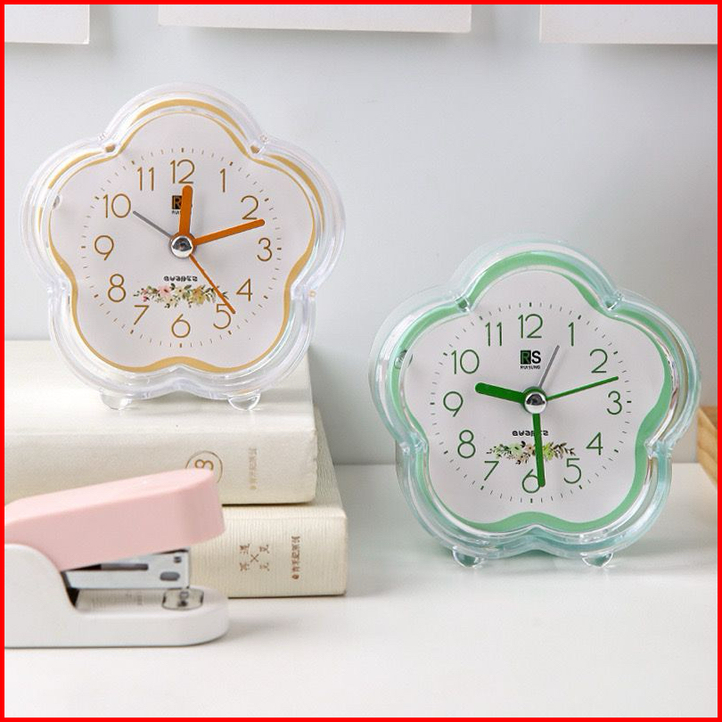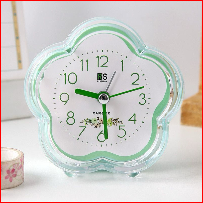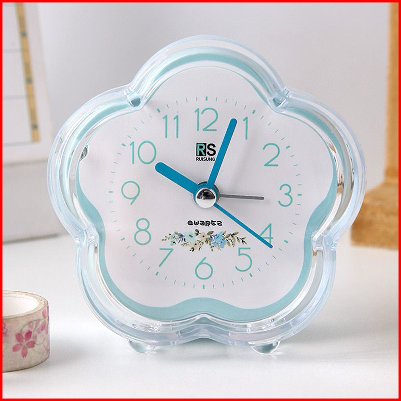 Jam Weker Quartz Flowers Aesthetic Alarm Plastik