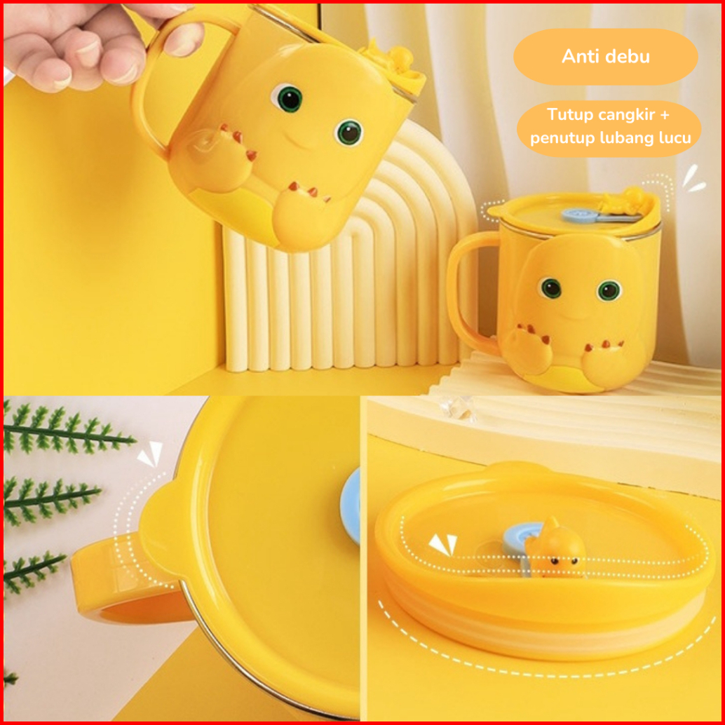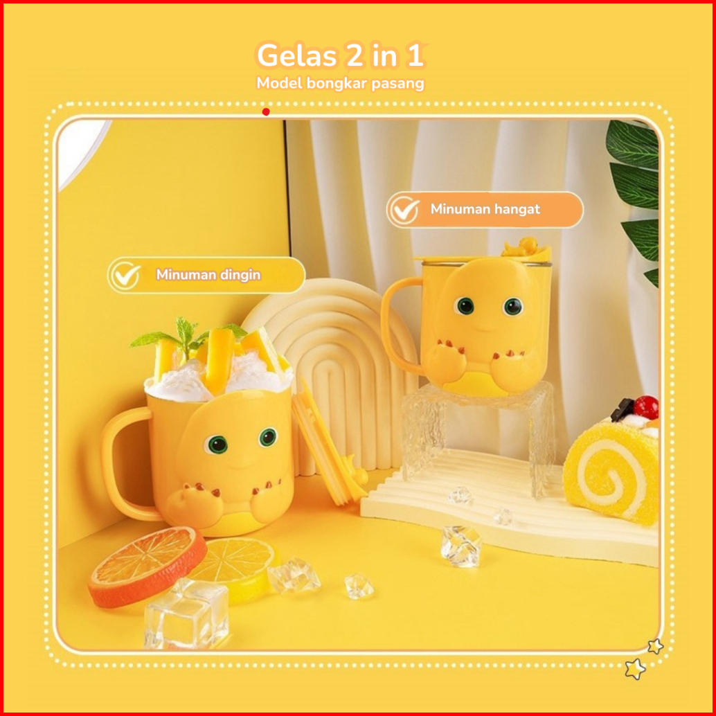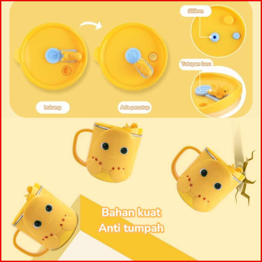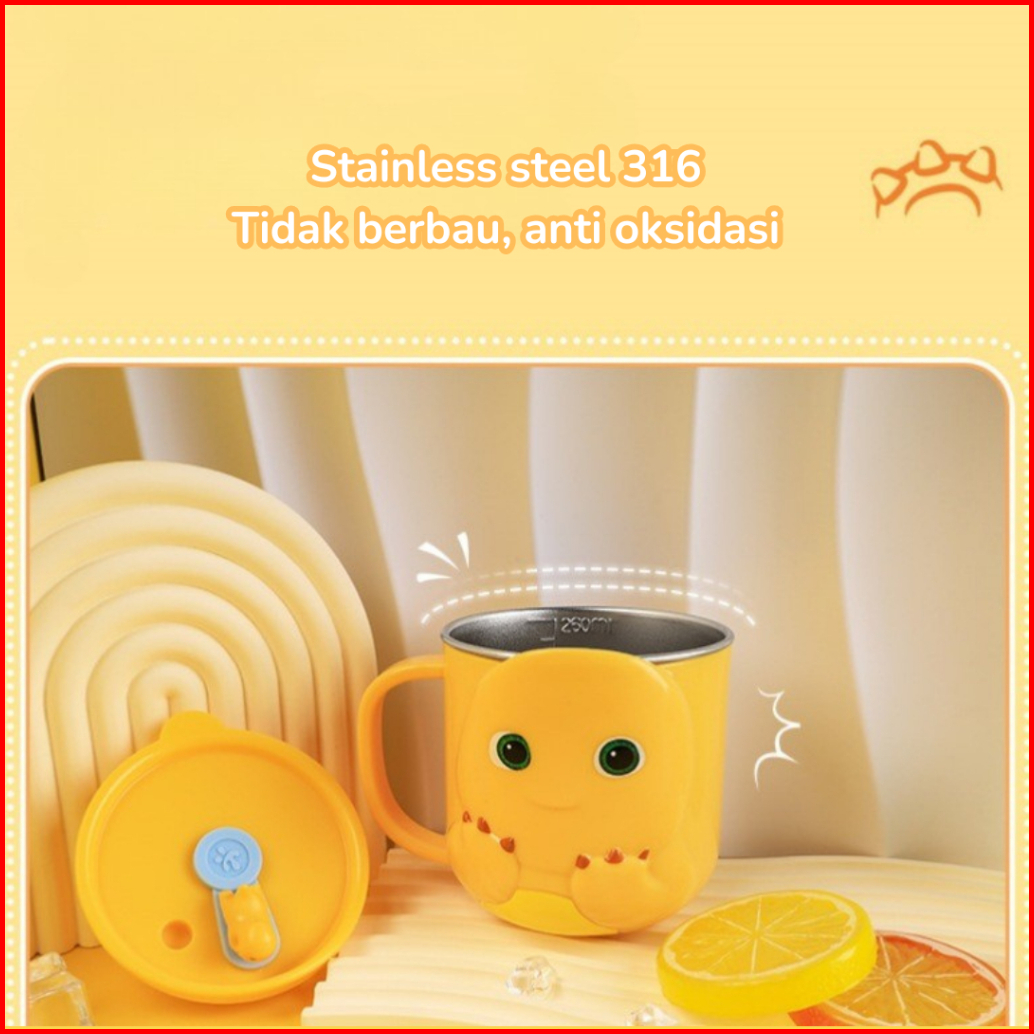 Momosee Gelas Anak Stainless Sedotan Anak Nailong 3d Gelas Minum Tahan Suhu Anti Tumpah 260ml Bb46