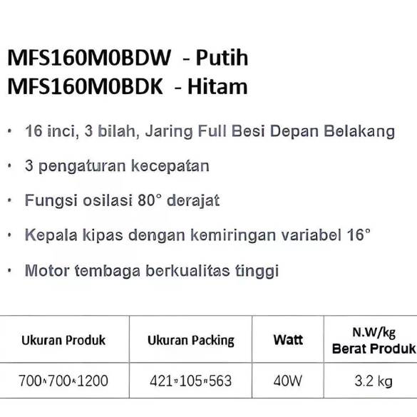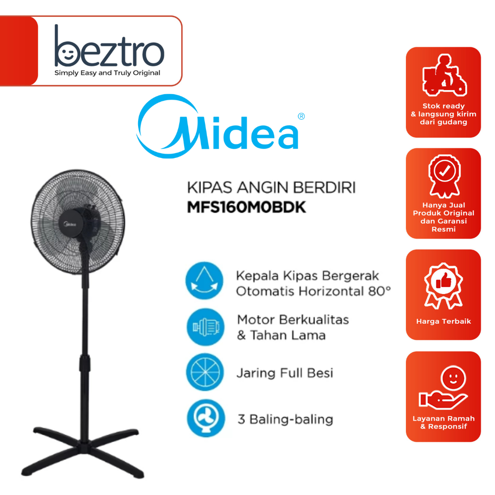 Midea Kipas Angin 16 Inch MFS-160-M0-BDK – Stand Fan 16 inch 3 Speed 40 Watt Hitam MFS160M0BDK