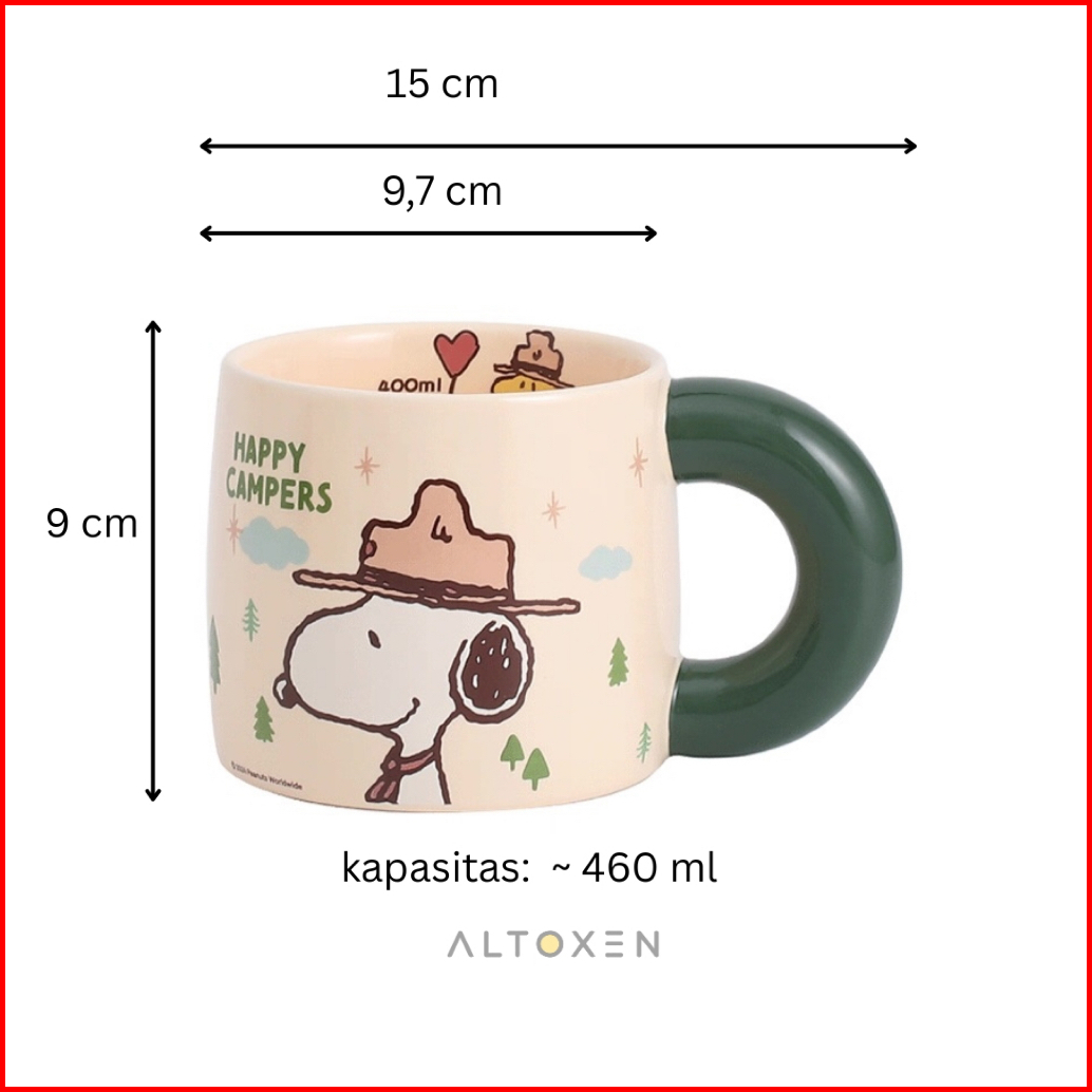Mug Keramik Snoopy Happy Campers 400 Ml Cangkir Kopi Teh Susu Karakter Lucu Gift Anak Cangkir Keramik Gelas Snoopy