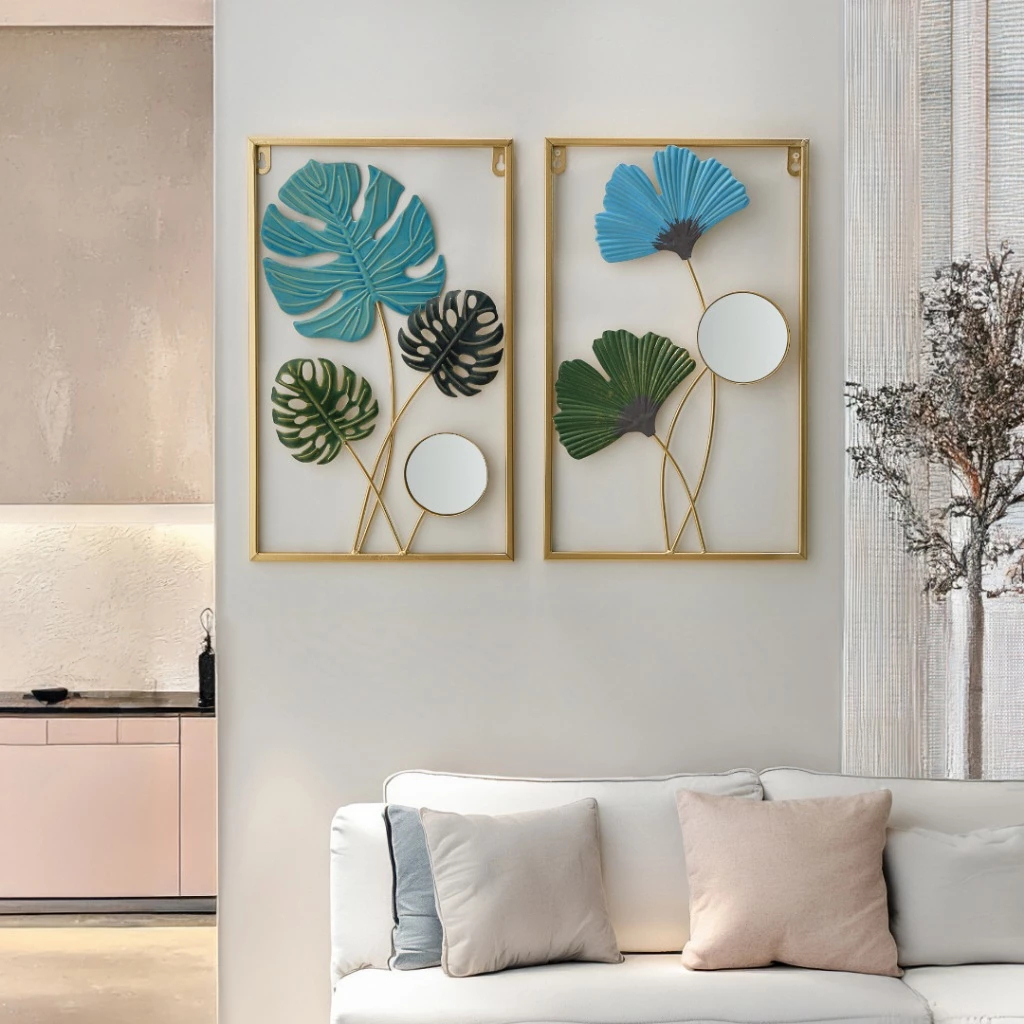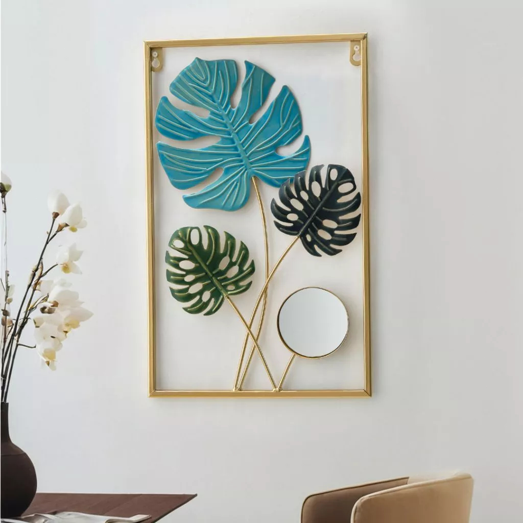 40cm x 25cm Wall Decor Metal Hiasan Dinding Daun Aesthetic / Wall Decoration 3D / Hiasan Dinding Dengan Cermin / Hiasan Dinding