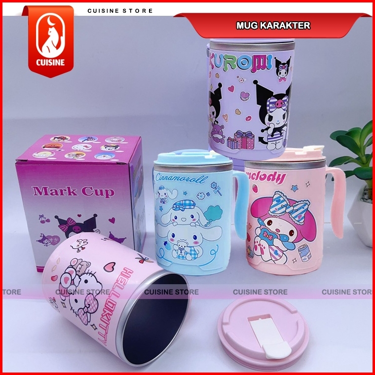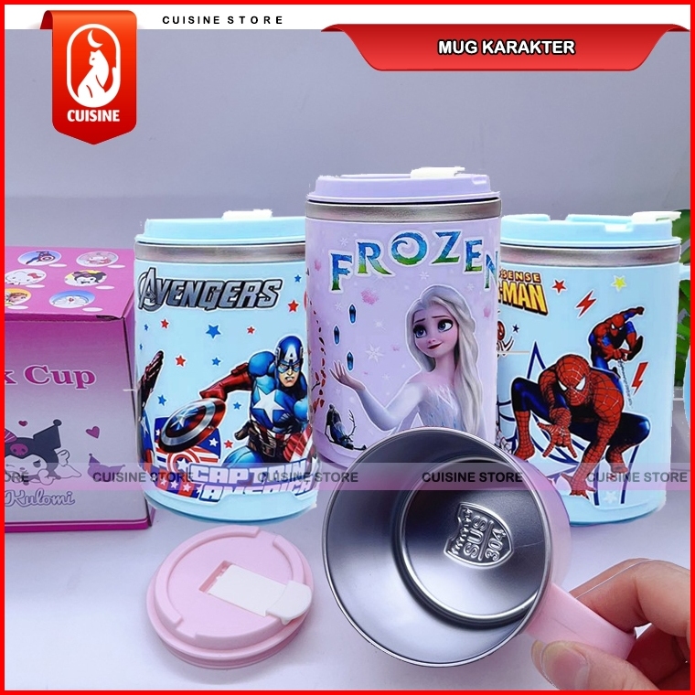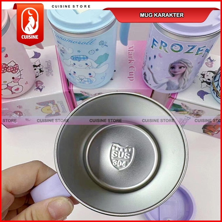 Gelas Cup Stainless Anak Gambar Kuromiii Sanriyo Disney Elsa Dino Sus 304