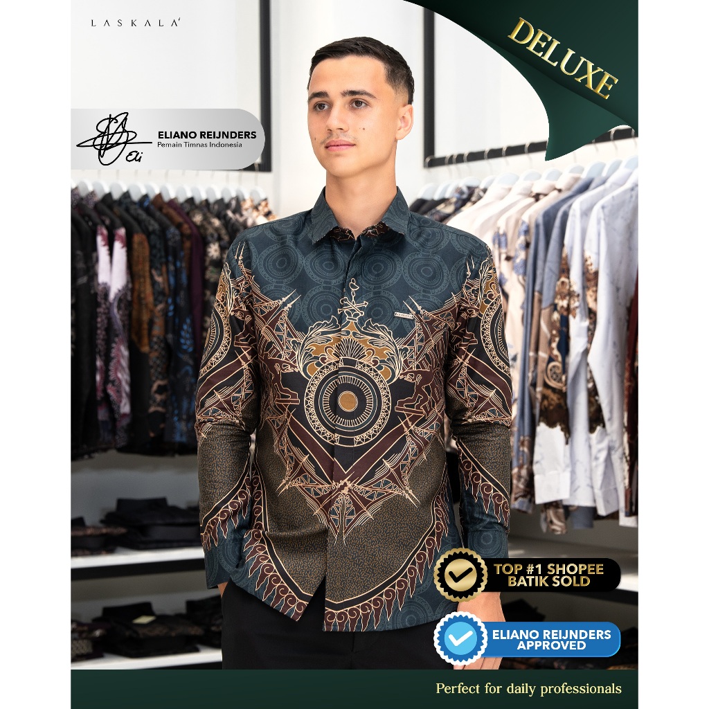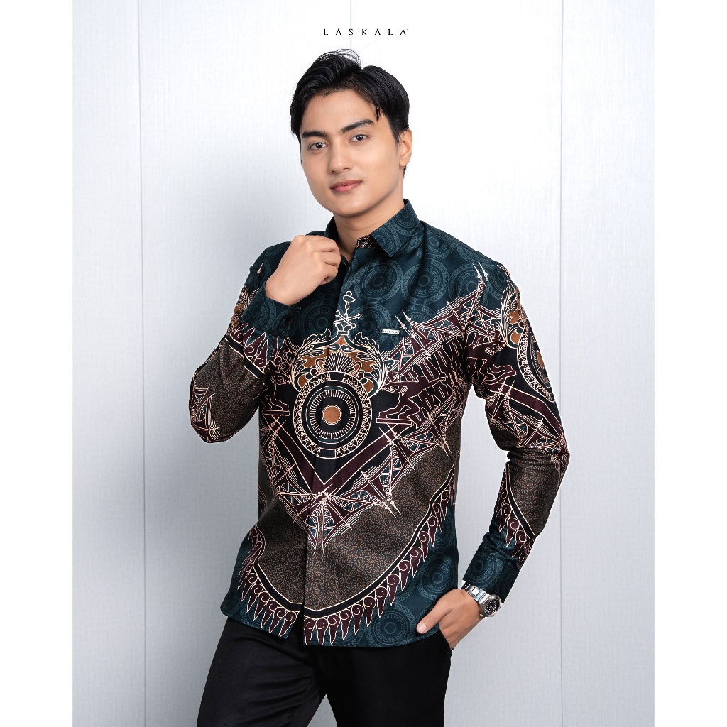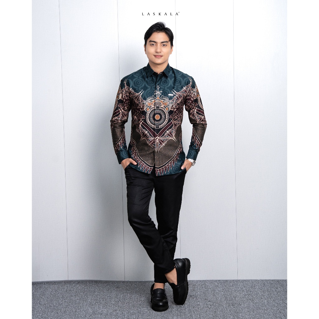 Laskala Batik Premium Bundaran HI Tosca Kemeja Batik Pria Slimfit Lengan Panjang