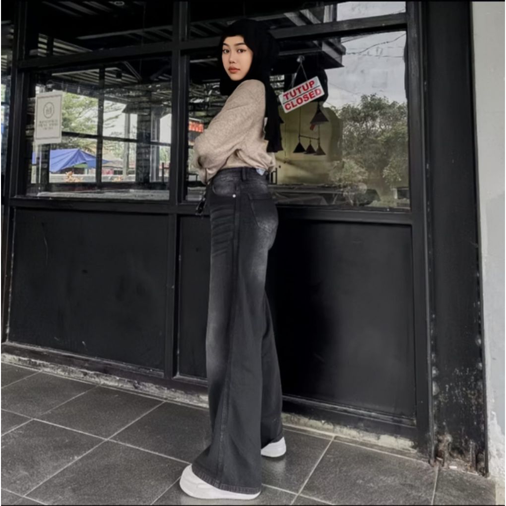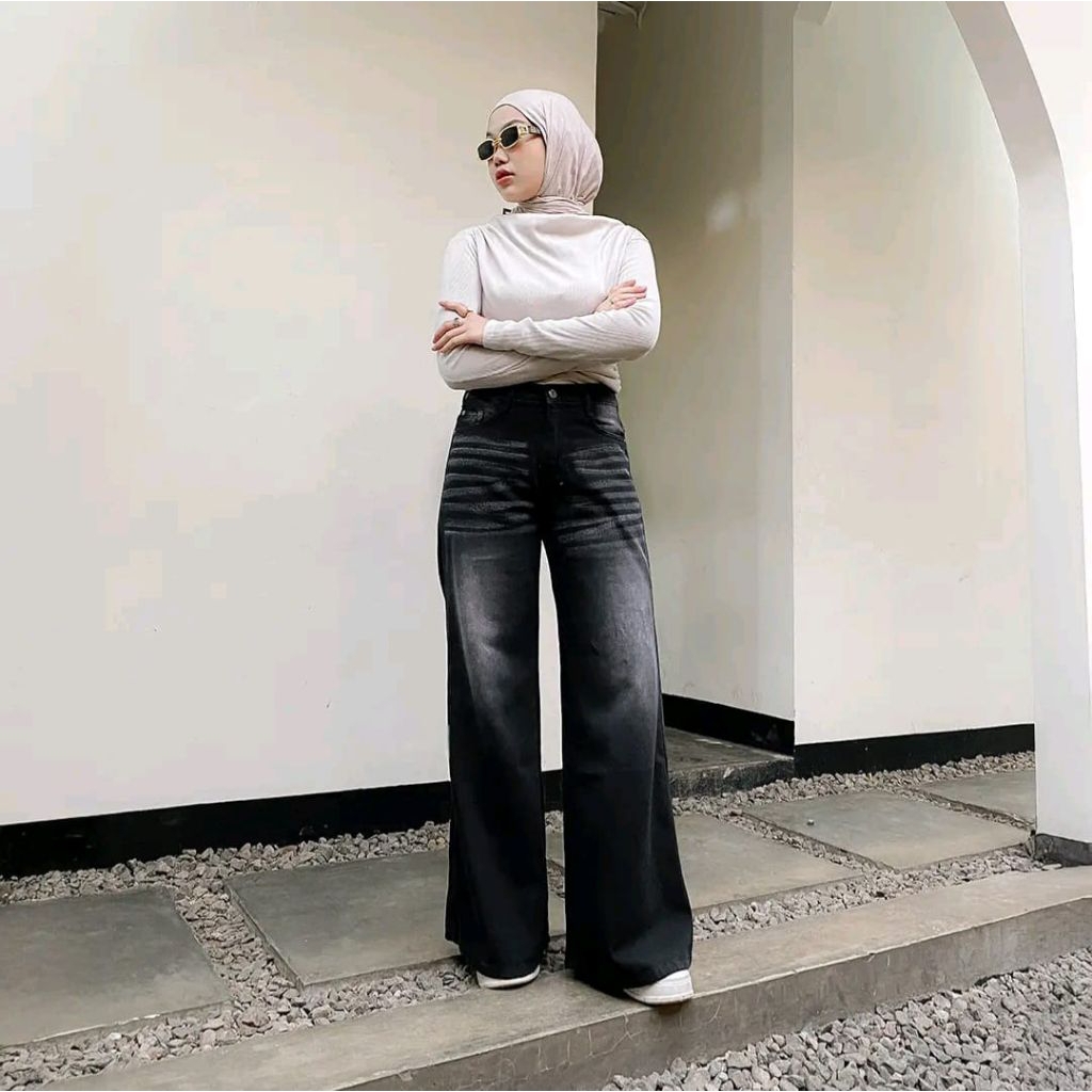 [ UNISEX ] Celana Jeans Wisker Gombrong Baggy Pants Wid Leg Premium Quality Korean Style Terlaris