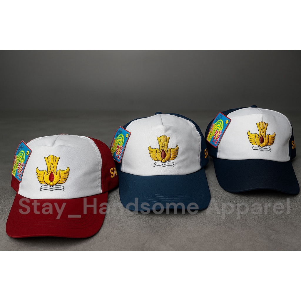 Topi SD SMP SMA Depan Putih Topi Seragam Sekolah Bordir Bagian Belakang Rel Dan Puring Bagian Dalam