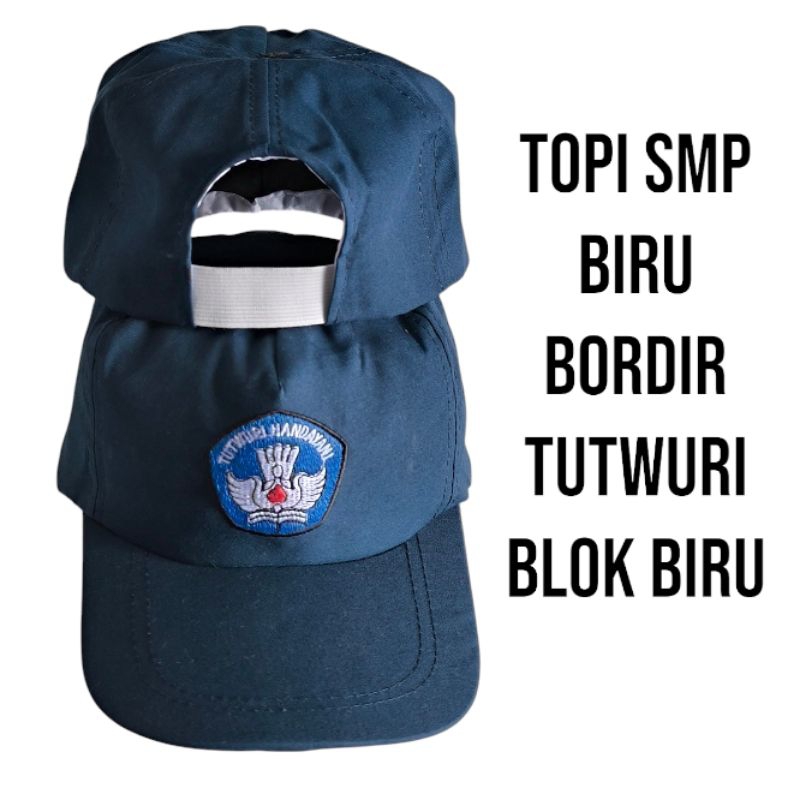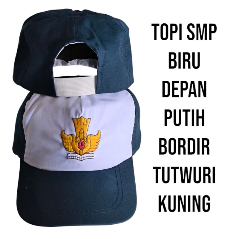 Topismp bordirkuning, Topi smp blok biru, Topi smp putih biru, Dasismp bordirkuning, Dasi smp blok biru, Ikat pinggang smp