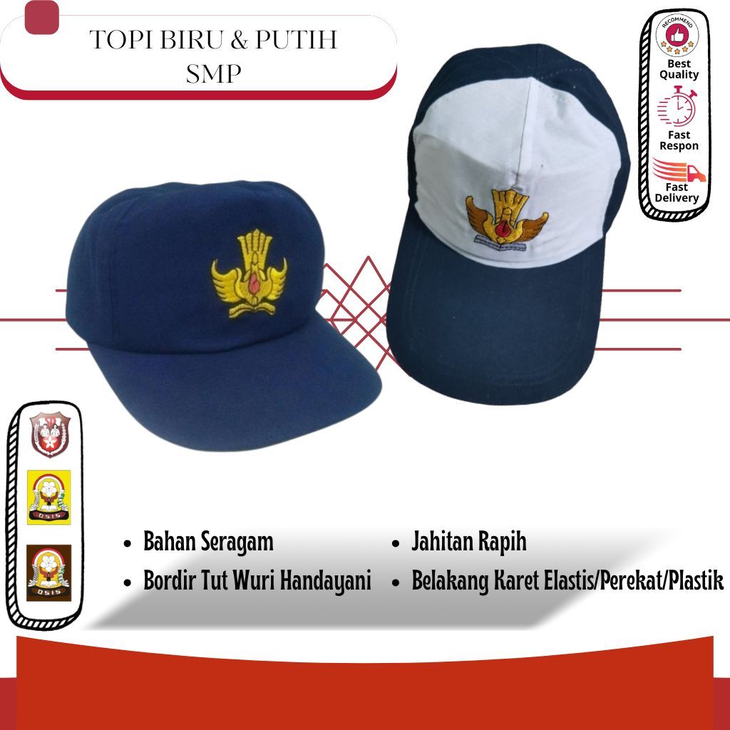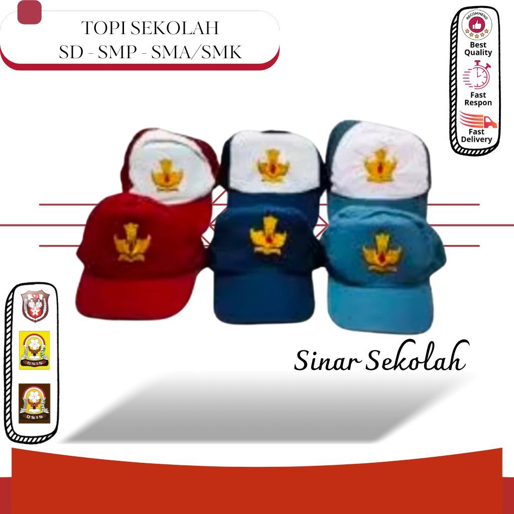 Topi Seragam Sekolah Aksesoris Sekolah Topi Merah Coklat Biru Abu-abu