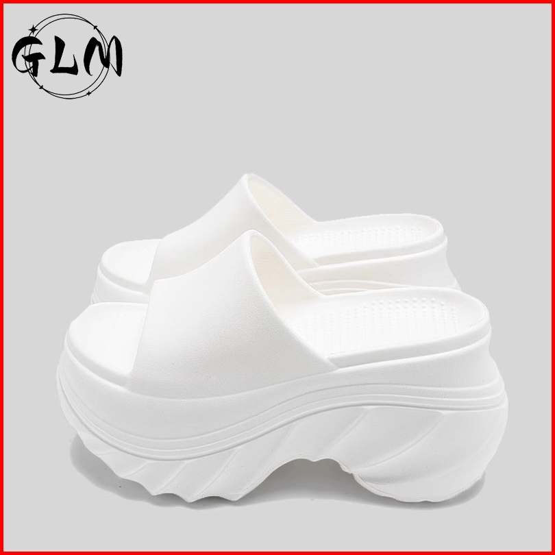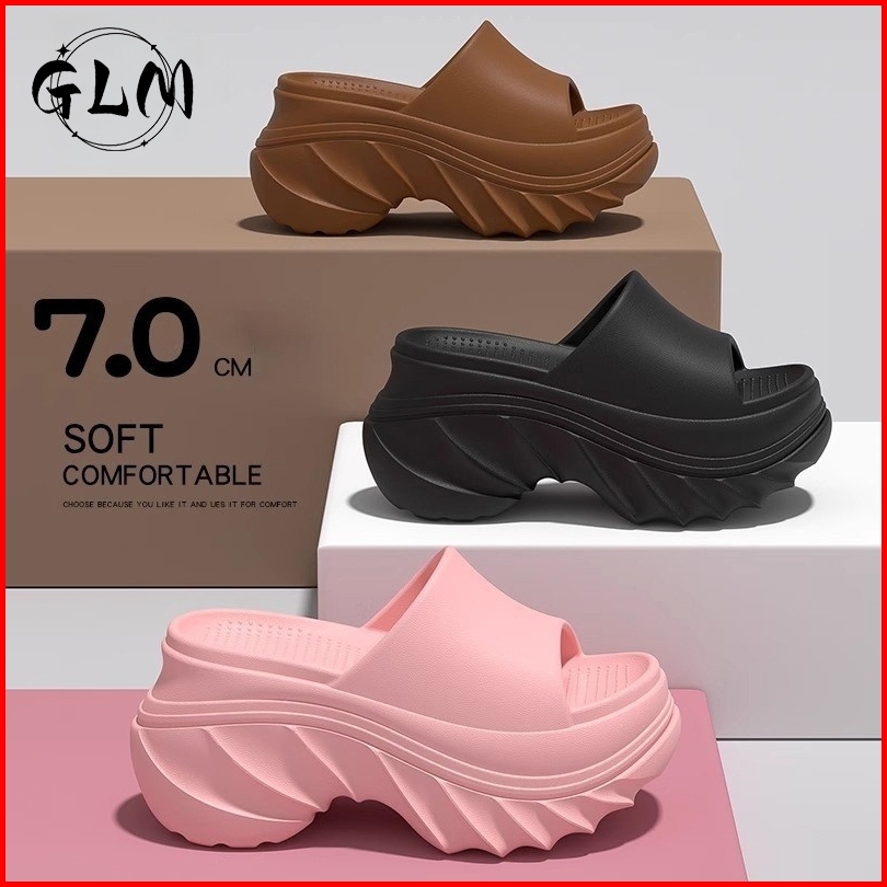 Glm Sendal Slop Wedges Wanita Korean Import Super High Heels Tinggi 9cm Bahan Sandal Karet Ringan