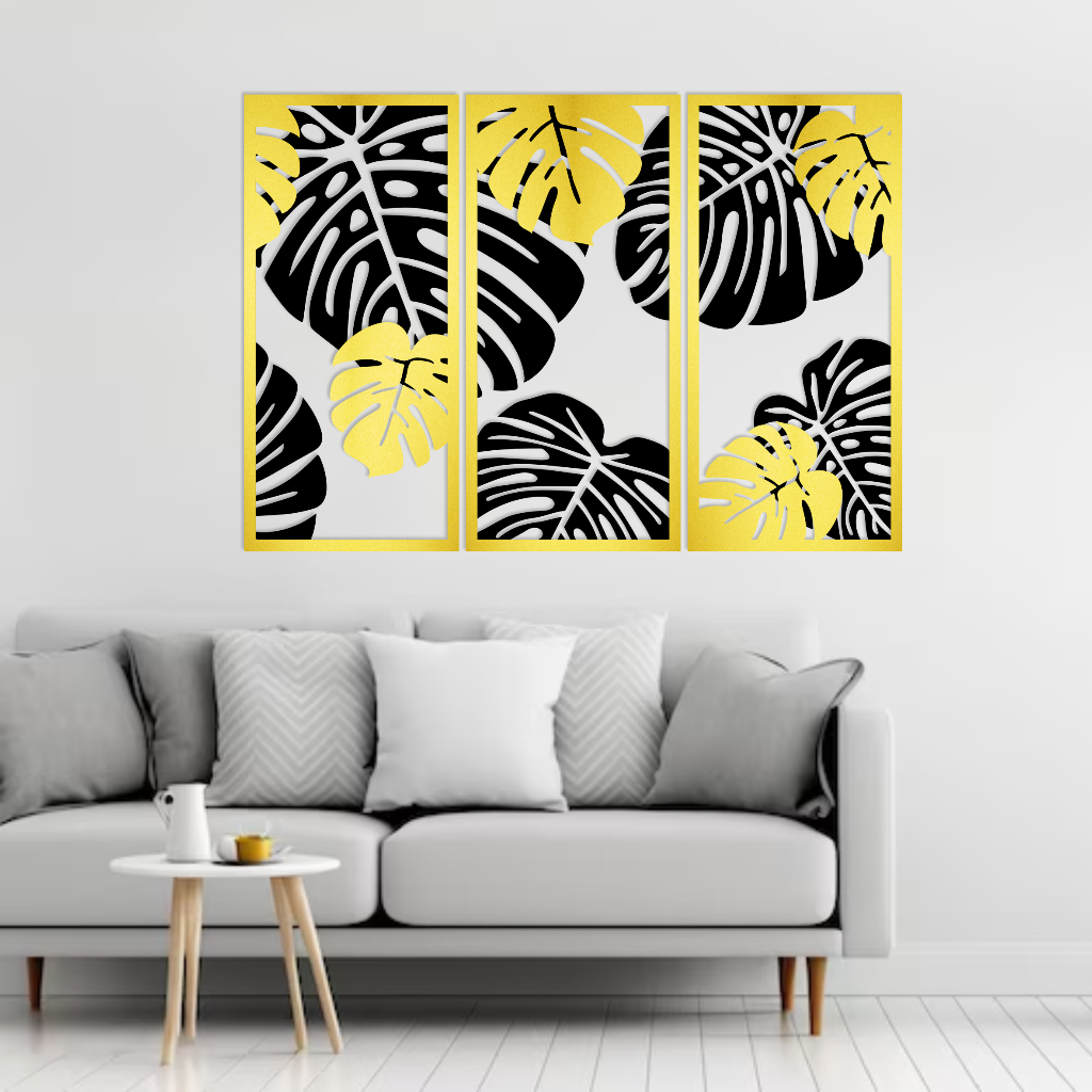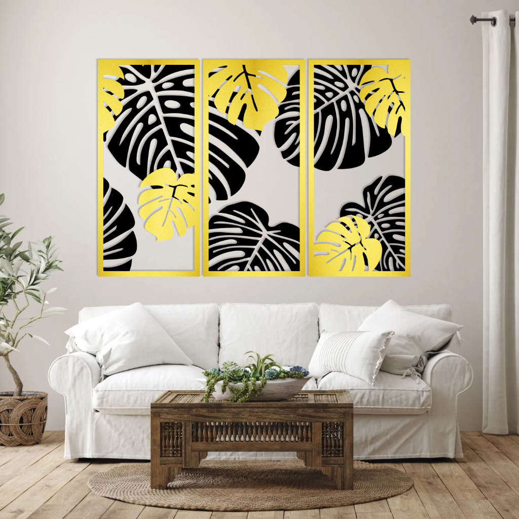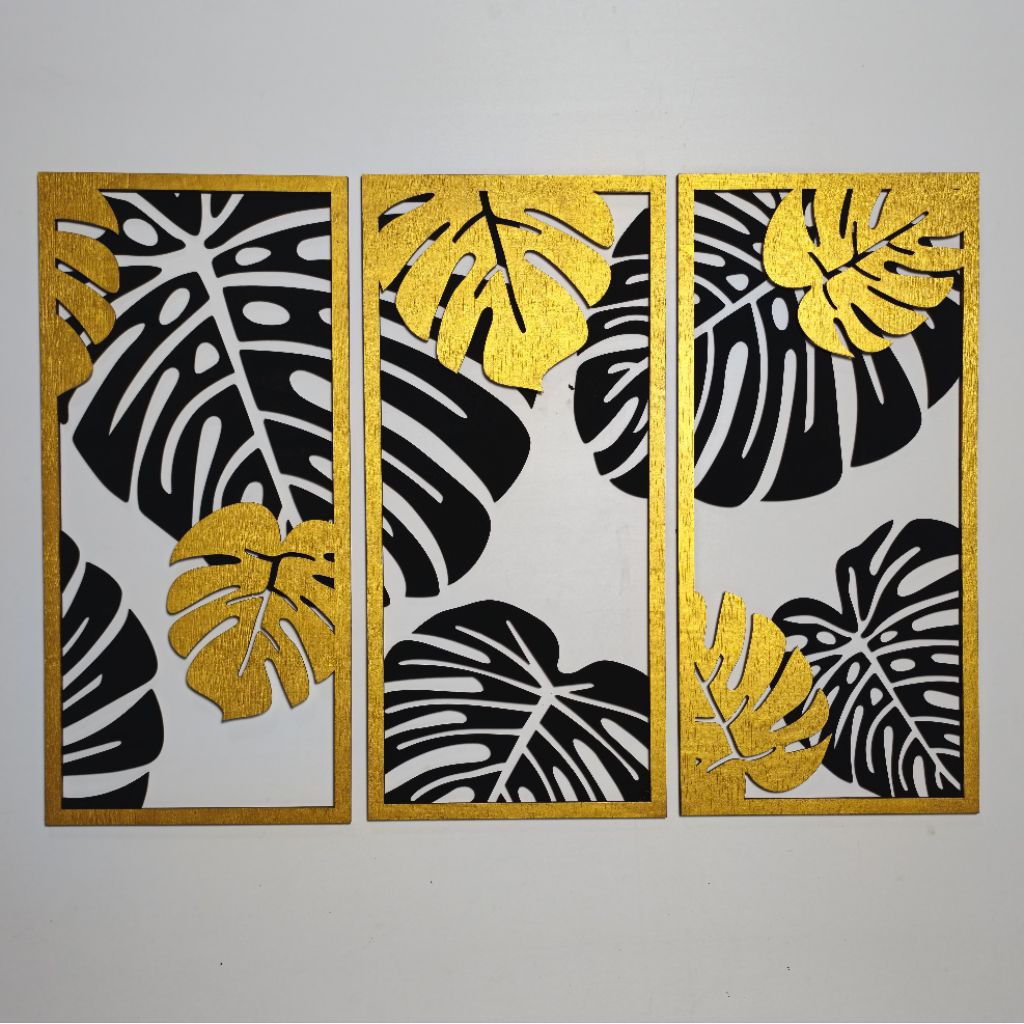 Hiasan Dinding Kayu Dekorasi 2 Layer Monstera Wall Decoration Minimalis Laser Cutting HD5