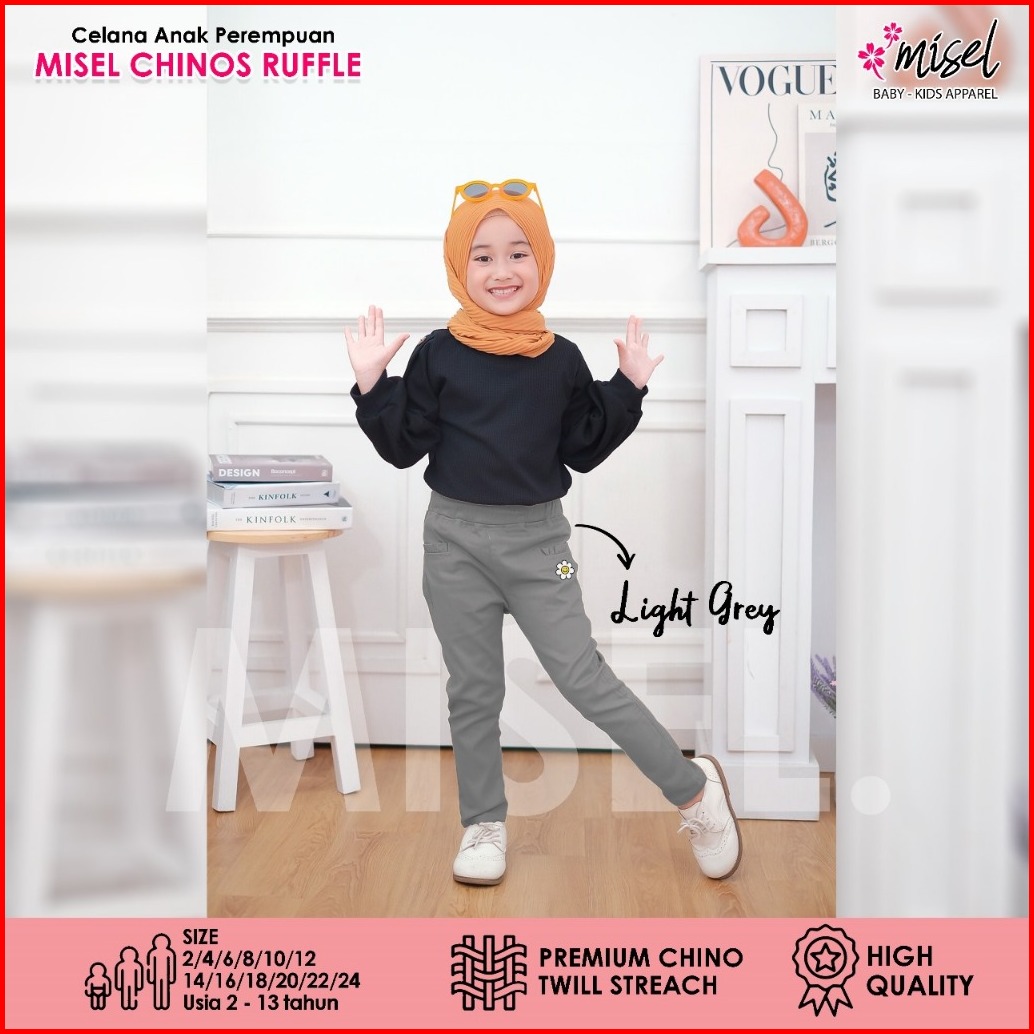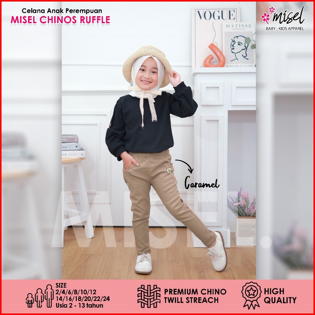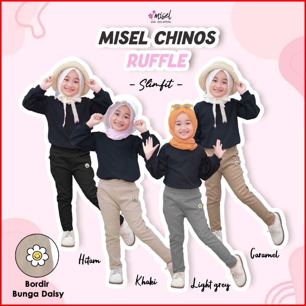 Misel Celana Chino Panjang Anak Perempuan Bordir Bunga Daisy Usia 2-13 Tahun