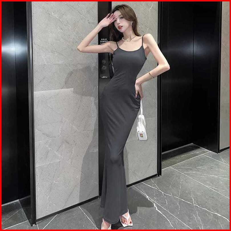 Lagi Viral Readystock Long Dress Tanktop Party Korean Style Maxi Bodycon Tali Spageti Termurah