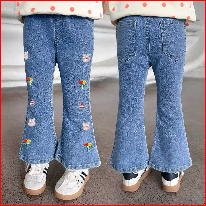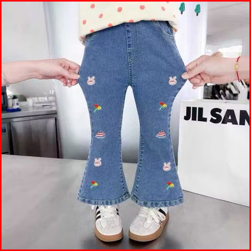 Celana Jeans Anak Perempuan Import 15 Tahun Model Cutbray Bordir Lucu Trendy