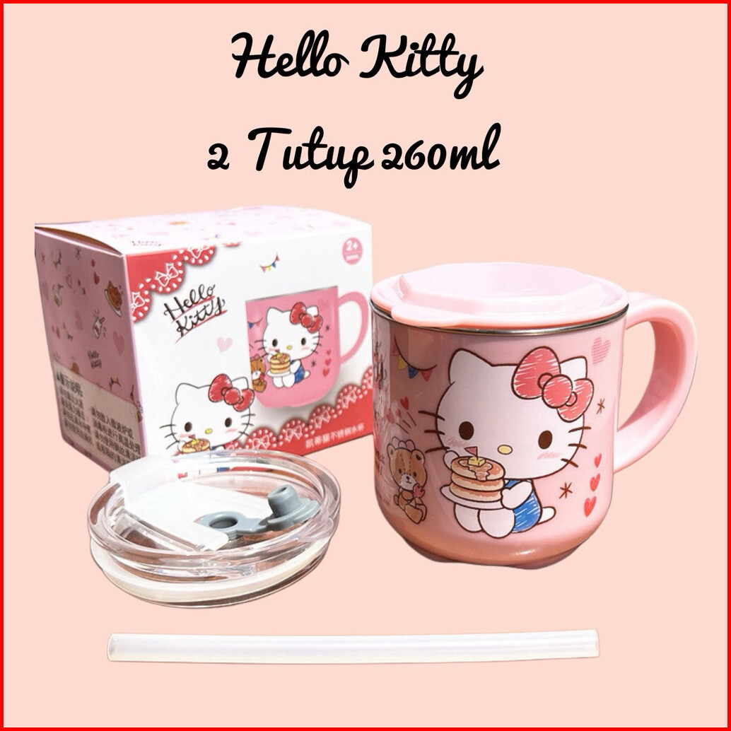 Gelas Stainless Anak 1 Tutup 2 Tutup Karakter Sanrio Kuromi Cinnamoroll Mug Gelas Anak Karakter 260ml