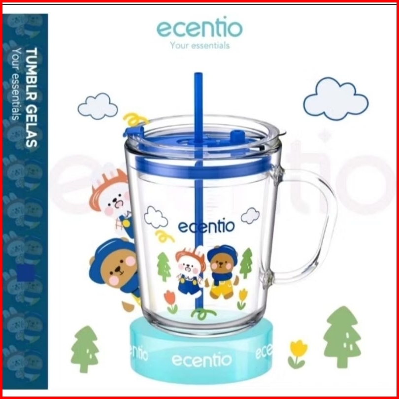Ecentio Cangkir Susu 400 Ml Dengan Sedotan Dan Takaran Gelas Minum Anak Kaca