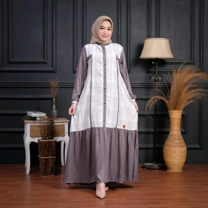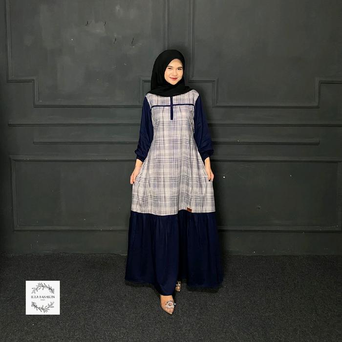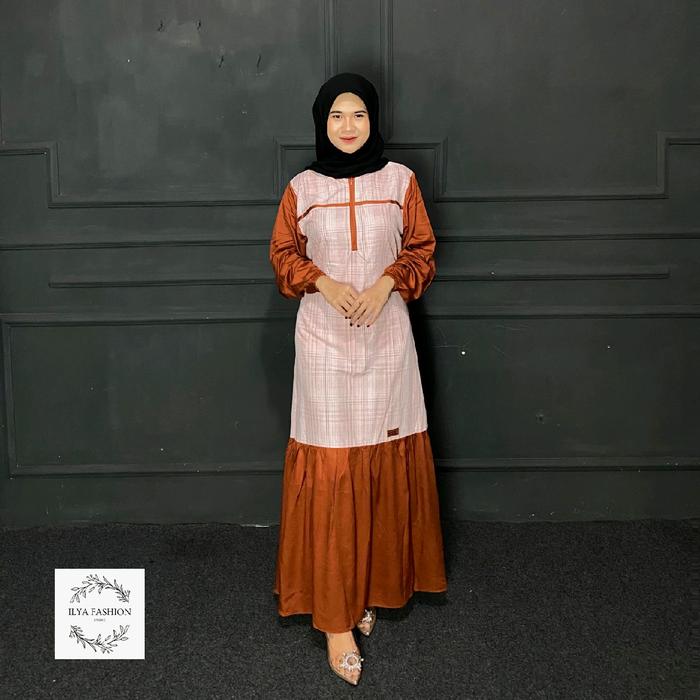 Gamis Haruka Dress Rayon Twill Ori Kombinasi Ld 110//Gamis Terbaru Kekinian Hitam Kombinasi Gamis Lebaran Gamis Remaja T